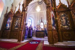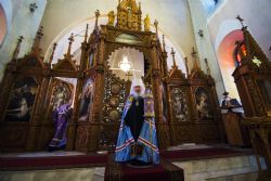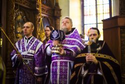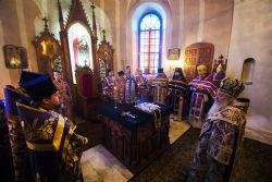 По заамвонной молитве духовенством было пропето славление чествуемому в этот день священномученику Гермогену.