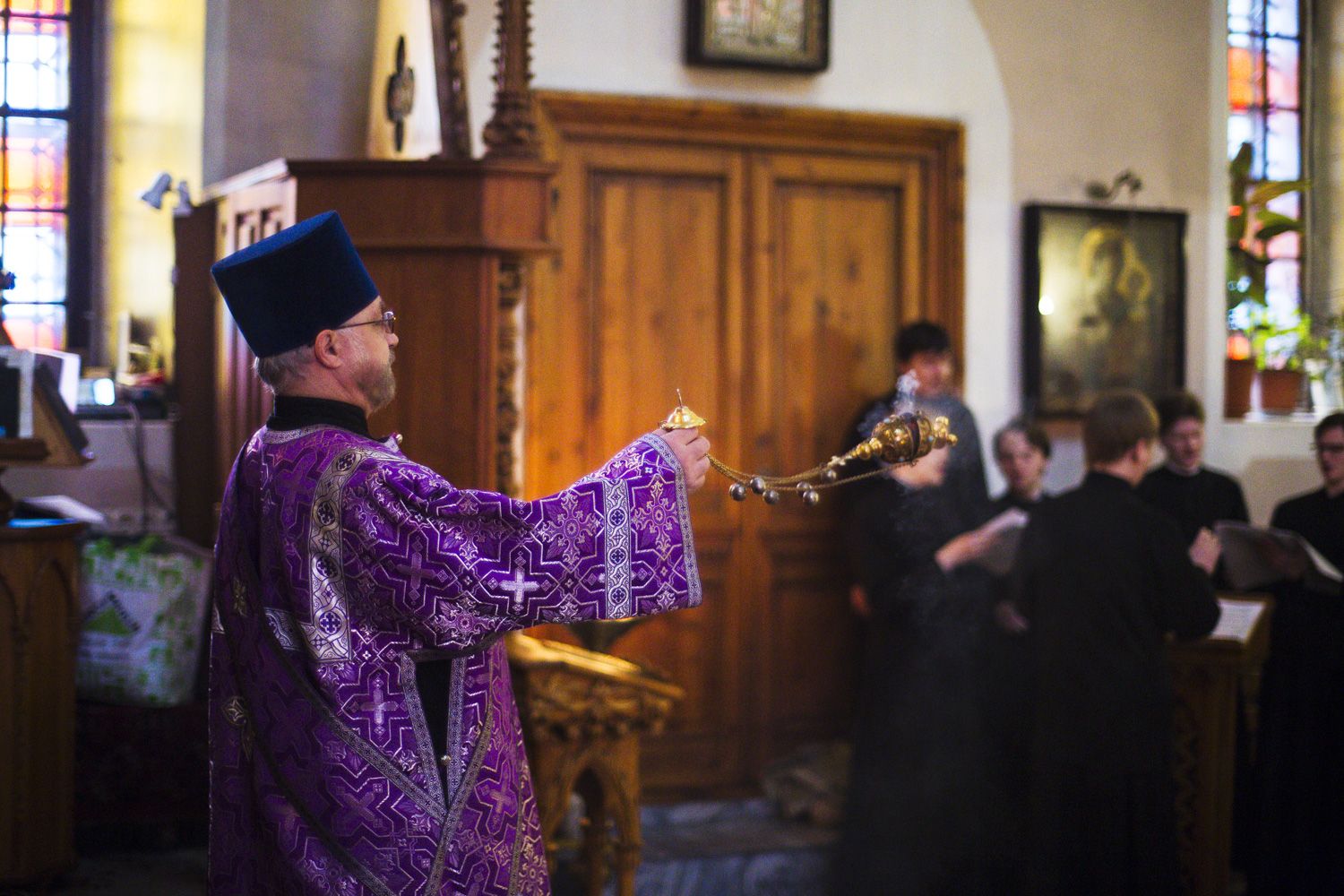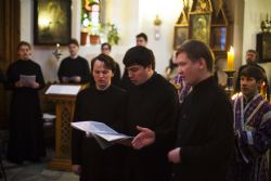 Пел мужской хор Казанской православной духовной семинарии под руководством Дмитрия Никитина.