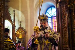 «Мы всё ещё боимся заявить твёрдо о своей вере. Яркий пример стояния за свою веру — священномученик Гермоген, Патриарх Московский, память которого мы совершаем сегодня. Он претерпел мучения за свою веру в Смутное время. Нас сейчас никто не мучает, но мы всё равно трусим. Желаю, чтобы время этого поста и последующая наша жизнь соответствовали нашему православному призванию», — сказал архипастырь.