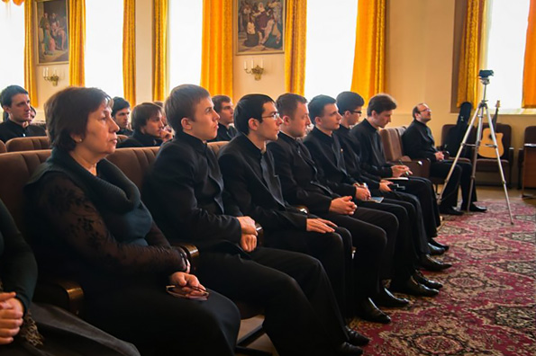Хорошее знание исторической литературы и живой характер отца Николая сделали встречу очень доброй и по-домашнему теплой. В конце встречи отец Николай ответил на вопросы воспитанников духовной школы.