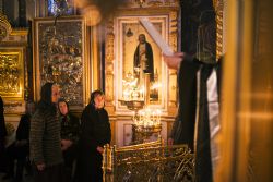 «В начале поста мы читали канон Андрея Критского и сейчас снова к нему возвращаемся. Также мы вспоминаем святую Марию Египетскую. Для чего это делается? Канон Андрея Критского говорит о необходимости покаяния, а житие святой Марии показывает нам его образец. Покаяние — это не просто перечисление своих грехов на исповеди, после которого можно довольным уйти из храма с мыслью, что всё прощено. Покаяние — это ещё и борьба со своими страстями и грехами. Борьба до самой смерти. Вы слышали, какие страдания она претерпевала. Мы должны понять, что без страданий нам не очиститься от грехов. Покаянный подвиг Марии Египетской является для нас образцовым примером. Без трудов не бывает серьёзных духовных достижений», — сказал клирик Свято-Вознесенского архиерейского подворья иерей Георгий Опарин.