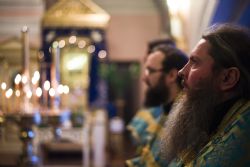 Совсем недавно за службой называемой «Мариино стояние» православные внимательно слушали Великий покаянный канон преподобного Андрея Критского и поучительное житие Марии Египетской. Прошёл всего день, и уже в пятницу вечером верующие вновь собрались в православных храмах Татарстанской митрополии, чтобы молитвенно присоединиться к чтению акафиста Божией Матери. Центральное богослужение прошло в Казанско-Богородицком мужском монастыре города Казани. Возглавил утреню с чтением акафиста перед чудотворным списком Казанской иконы Божией Матери наместник обители игумен Марк (Виленский) в сослужении братии монастыря.