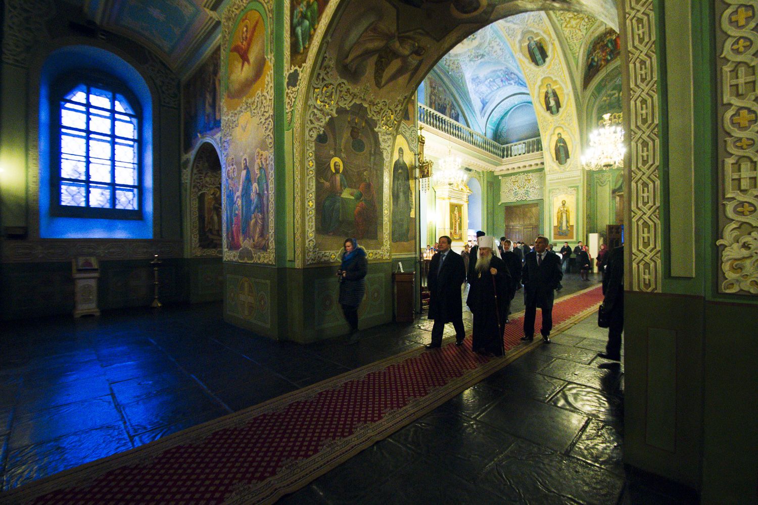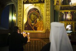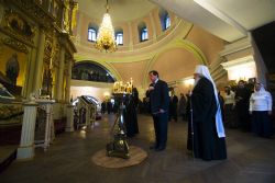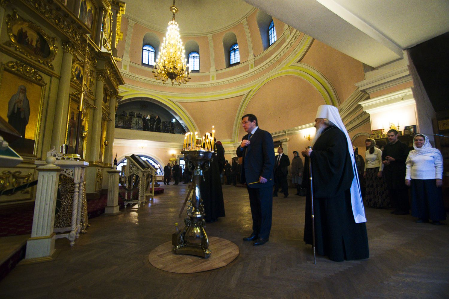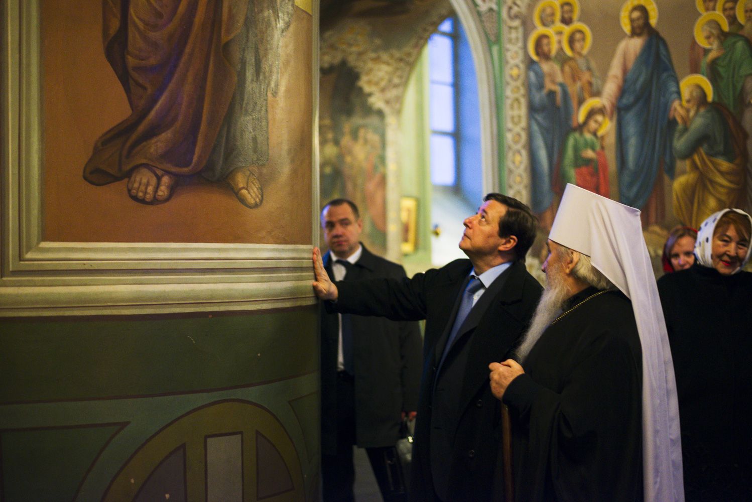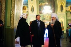 В Крестовоздвиженском храме Богородицкого монастыря А.Г. Хлопонин поклонился чудотворному списку Казанской иконы Божией Матери.