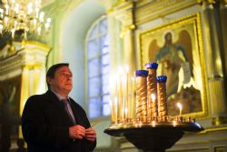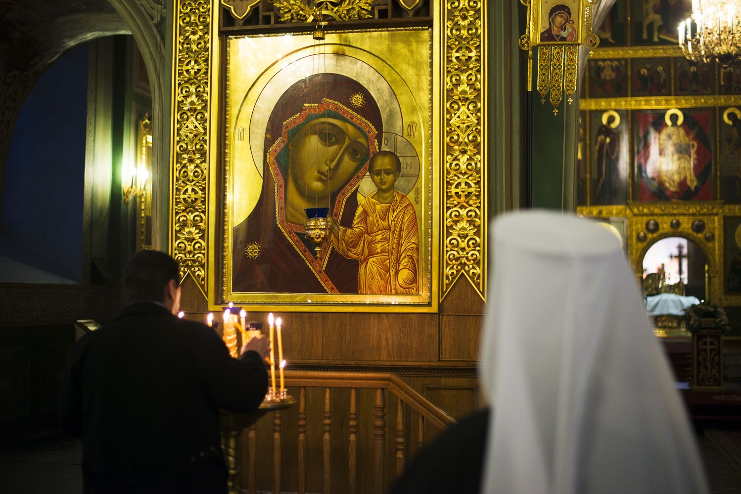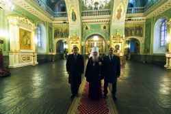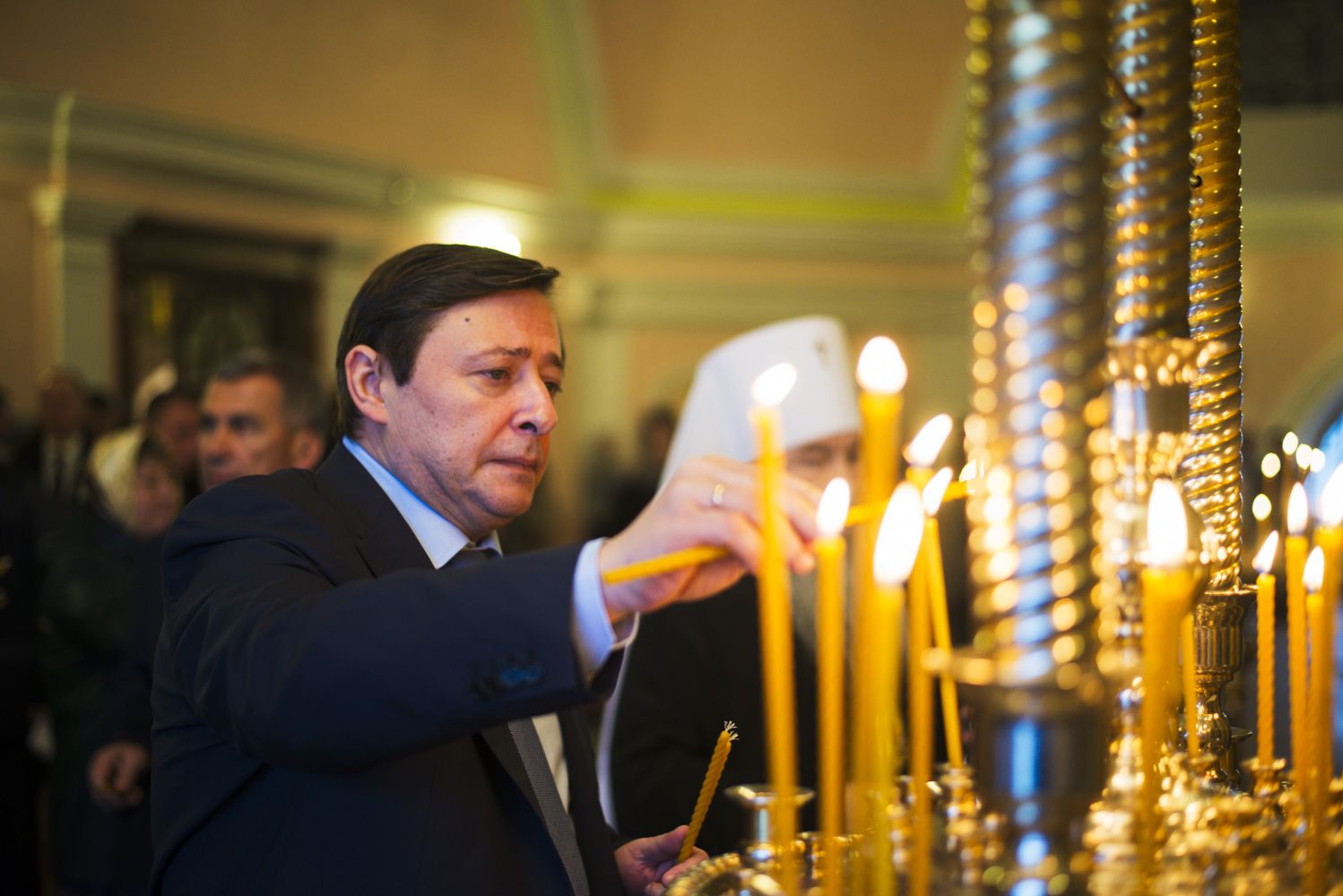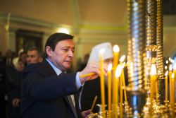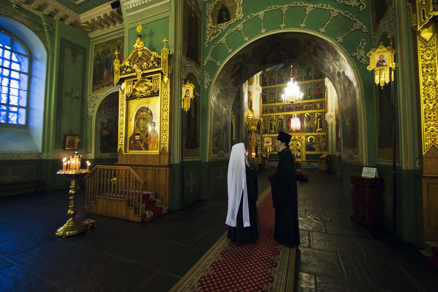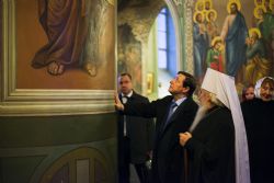 В Крестовоздвиженском храме Богородицкого монастыря А.Г. Хлопонин поклонился чудотворному списку Казанской иконы Божией Матери.