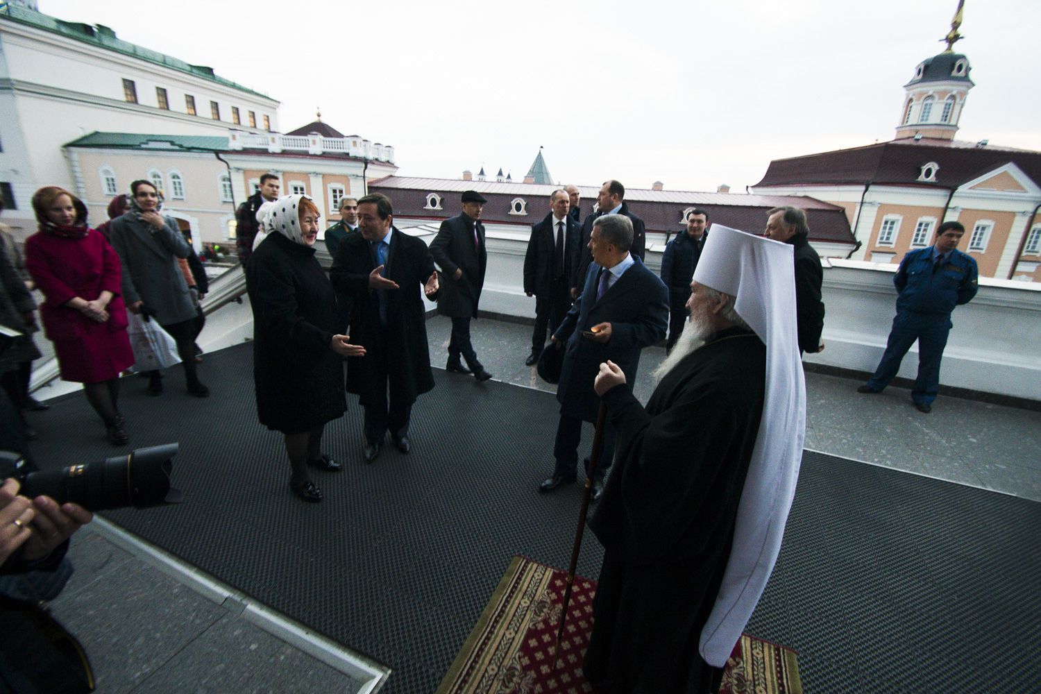 В Богородицкой обители гостей приветствовал митрополит Казанский и Татарстанский Феофан. В период исполнения владыкой Феофаном архипастырских послушаний на Ставропольской и Владикавказской кафедре регулярными были рабочие контакты архипастыря с А.Г. Хлопониным, в 2010-2014 гг. — полномочным представителем Президента РФ в Северо-Кавказском федеральном округе.
