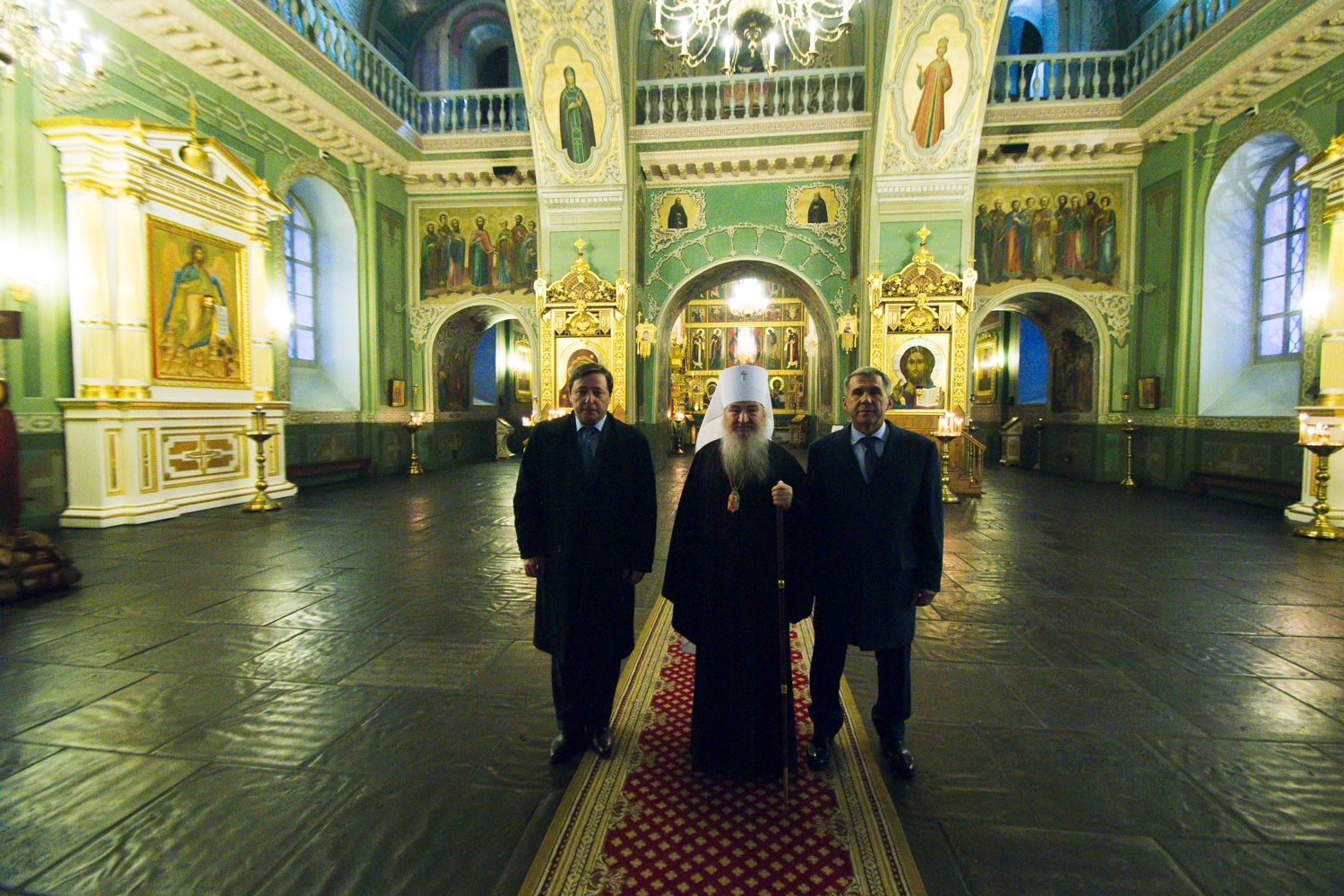 В завершение правящий архиерей Казанской епархии вручил высокому гостю памятные подарки.