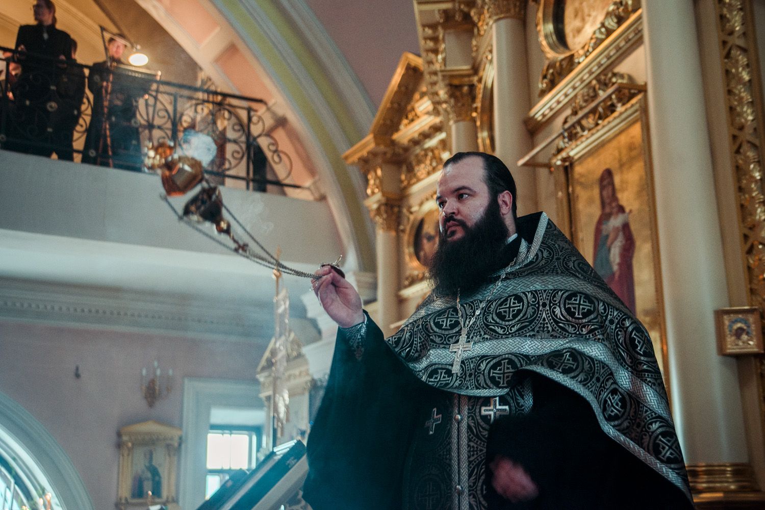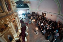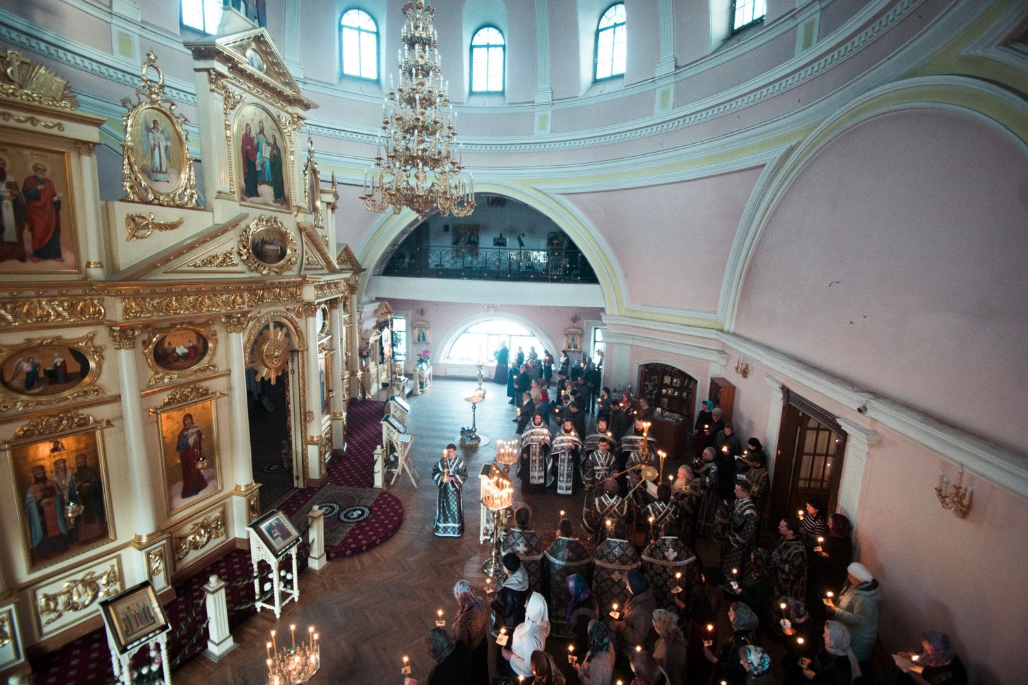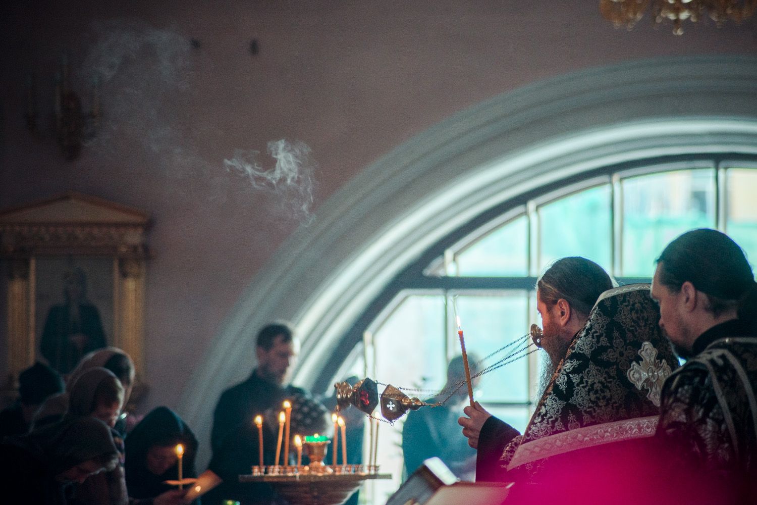 Песнопения вечернего богослужения исполнил архиерейский мужской хор под управлением Дениса Рогова.