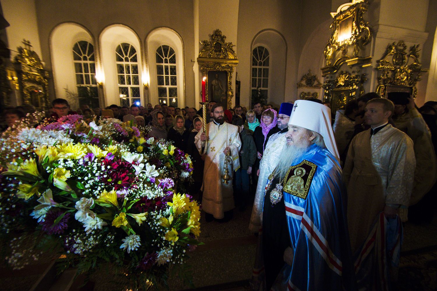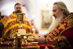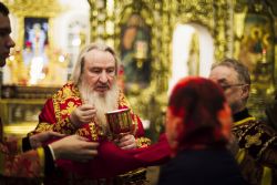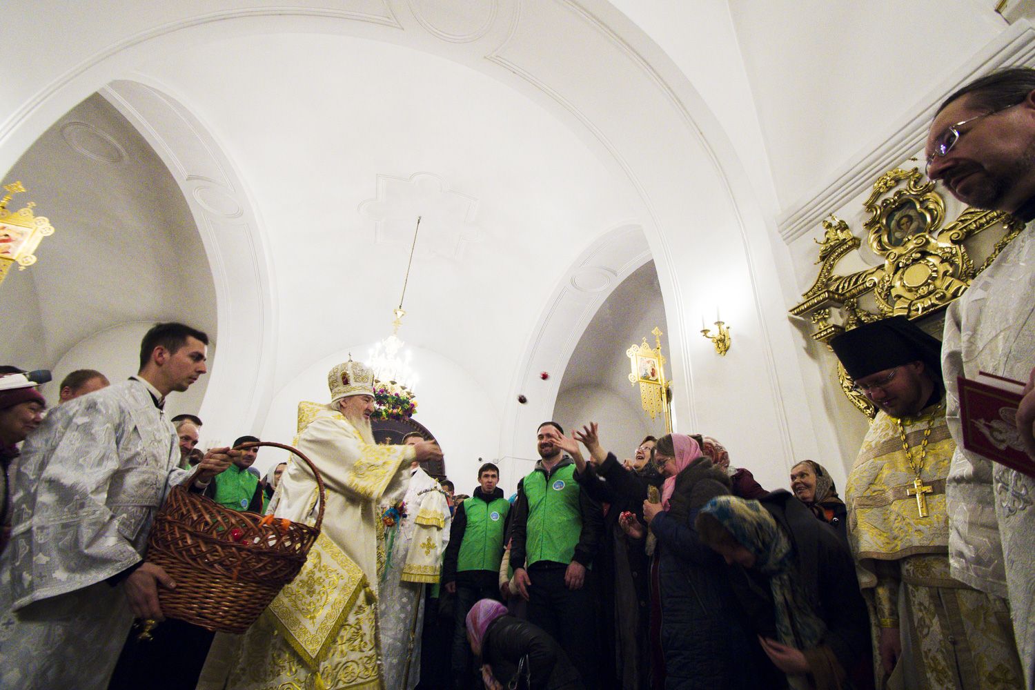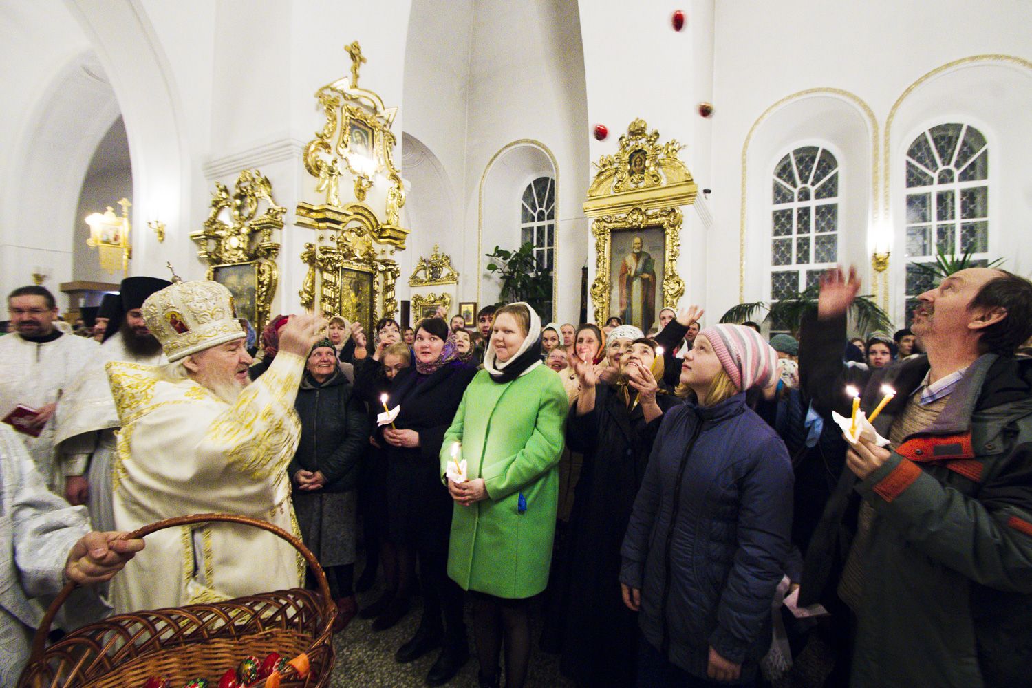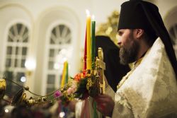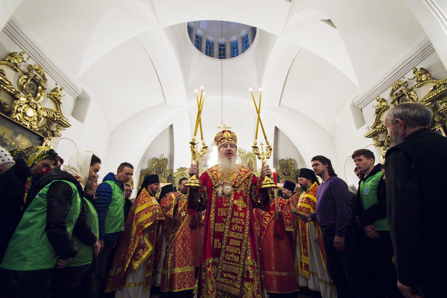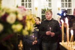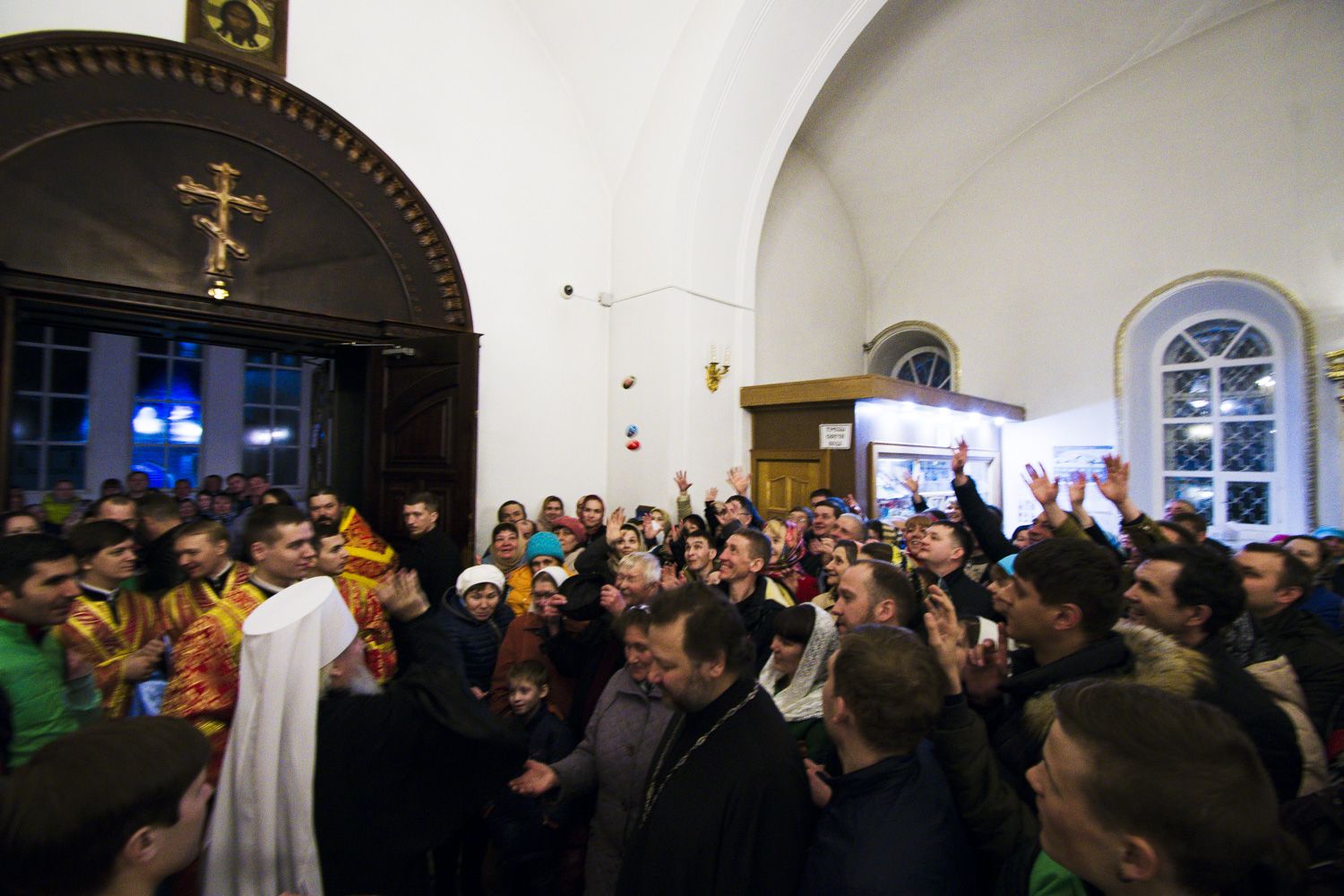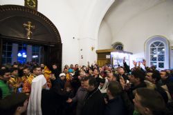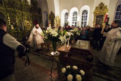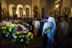 В заключение торжественного богослужения Его Высокопреосвященство поблагодарил верующих за совместную молитву и поздравил с праздником Светлого Христова Воскресения. «Несите благодать, полученную в эту святую ночь, в свои дома. Мы постепенно начинаем оживать и понимать, что должны блюсти свои традиции и свою веру», — сказал владыка Феофан.
