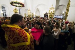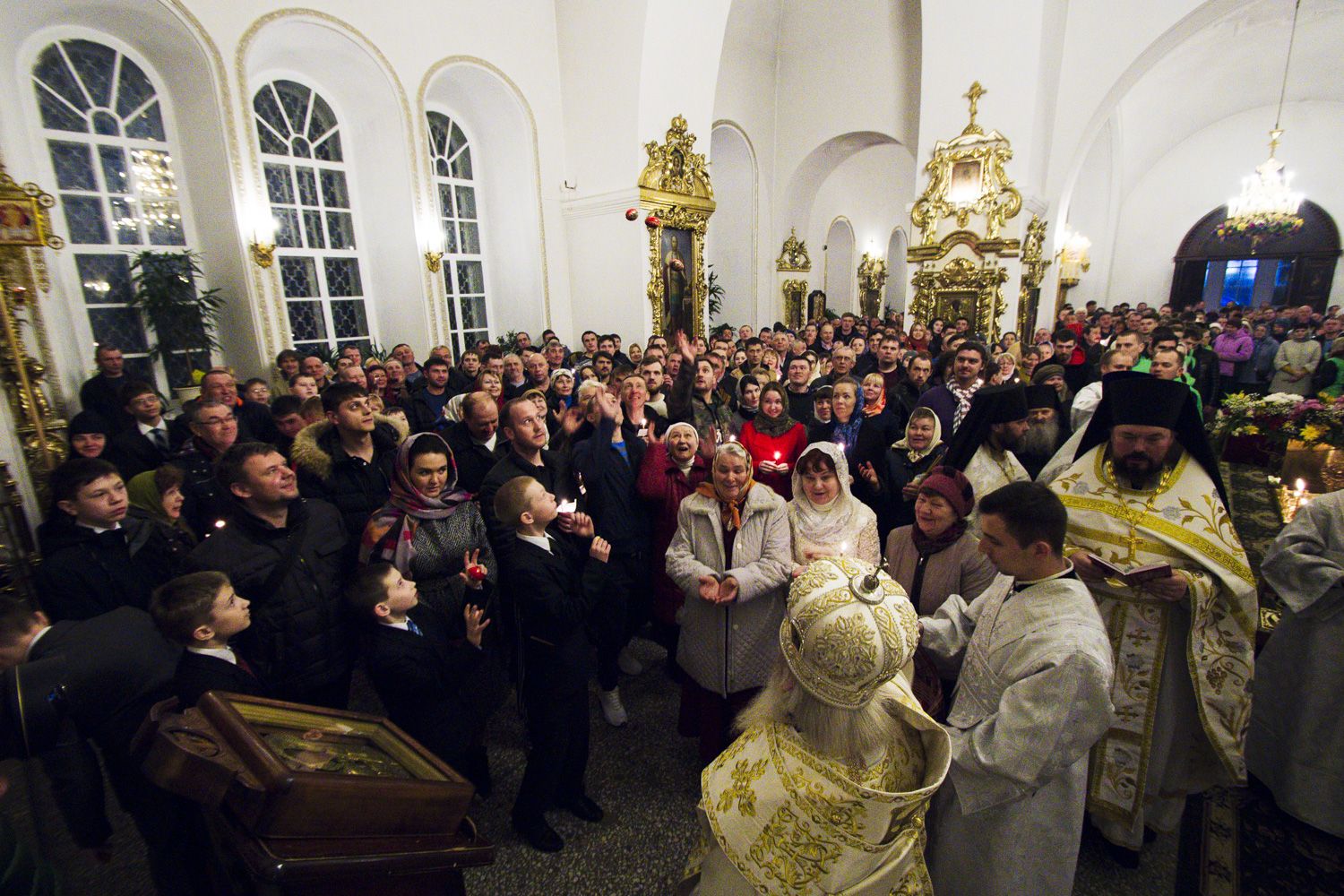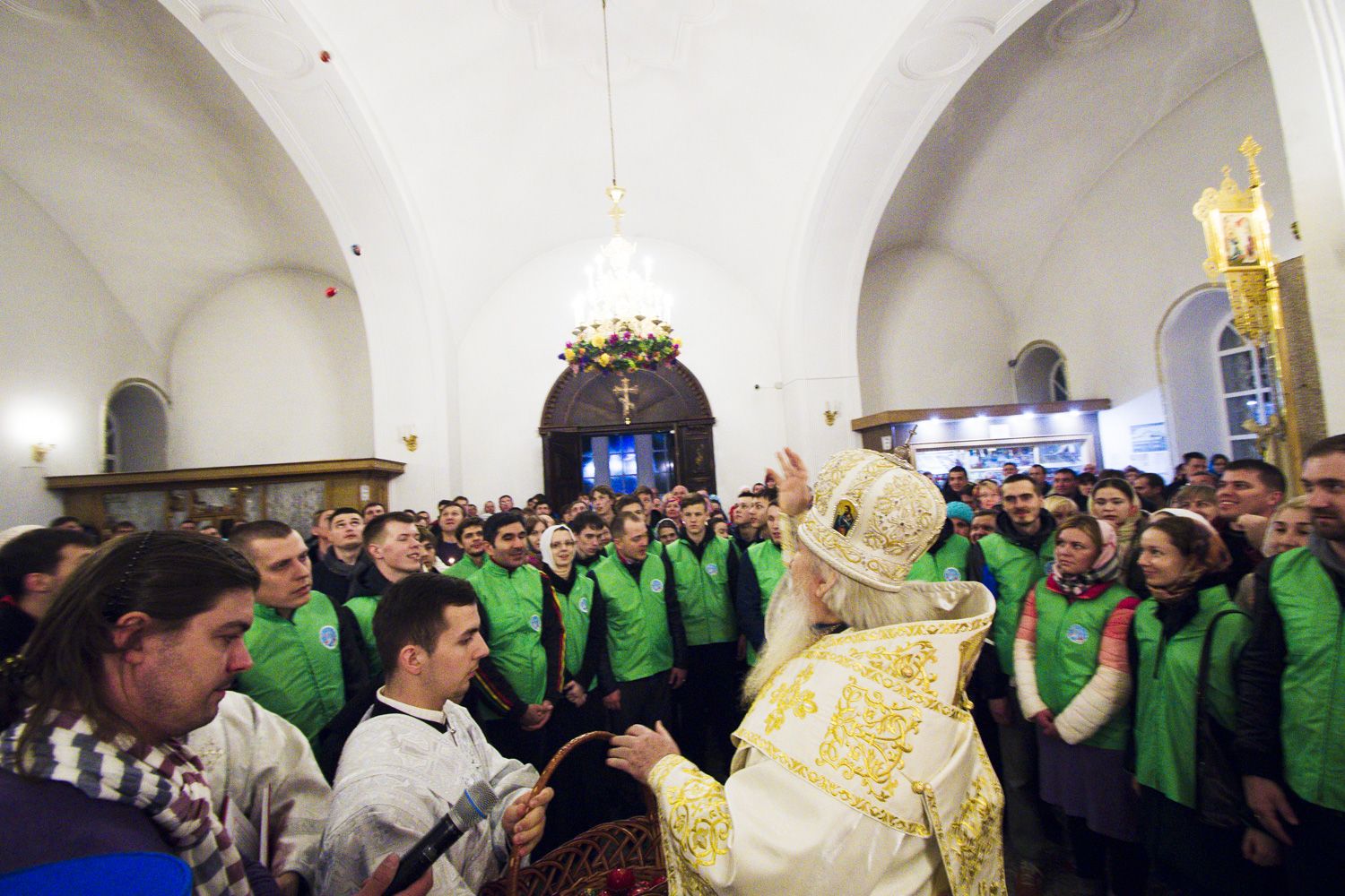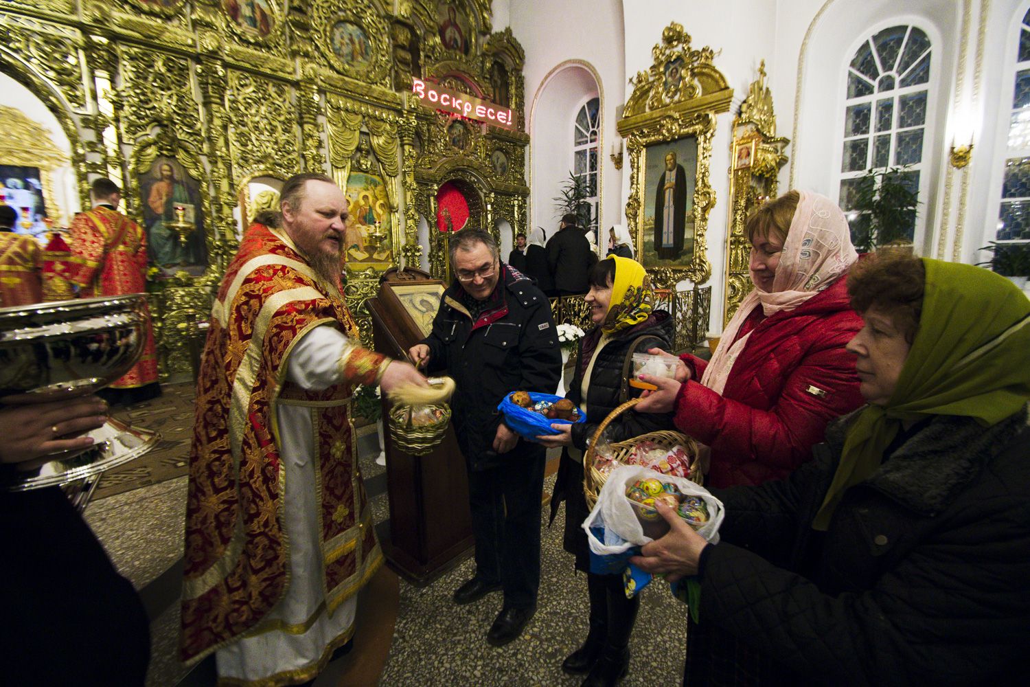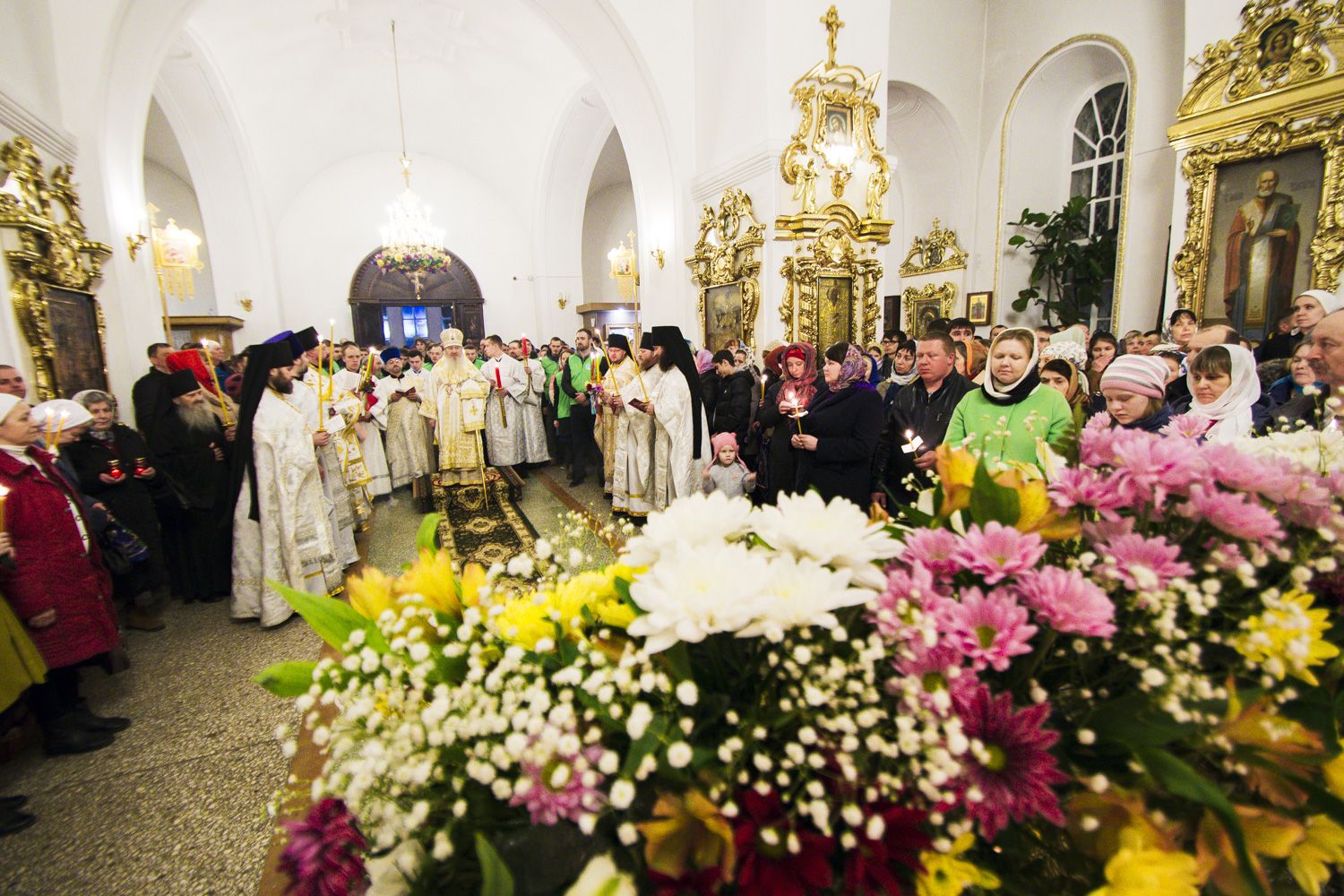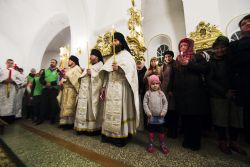 В заключение торжественного богослужения Его Высокопреосвященство поблагодарил верующих за совместную молитву и поздравил с праздником Светлого Христова Воскресения. «Несите благодать, полученную в эту святую ночь, в свои дома. Мы постепенно начинаем оживать и понимать, что должны блюсти свои традиции и свою веру», — сказал владыка Феофан.