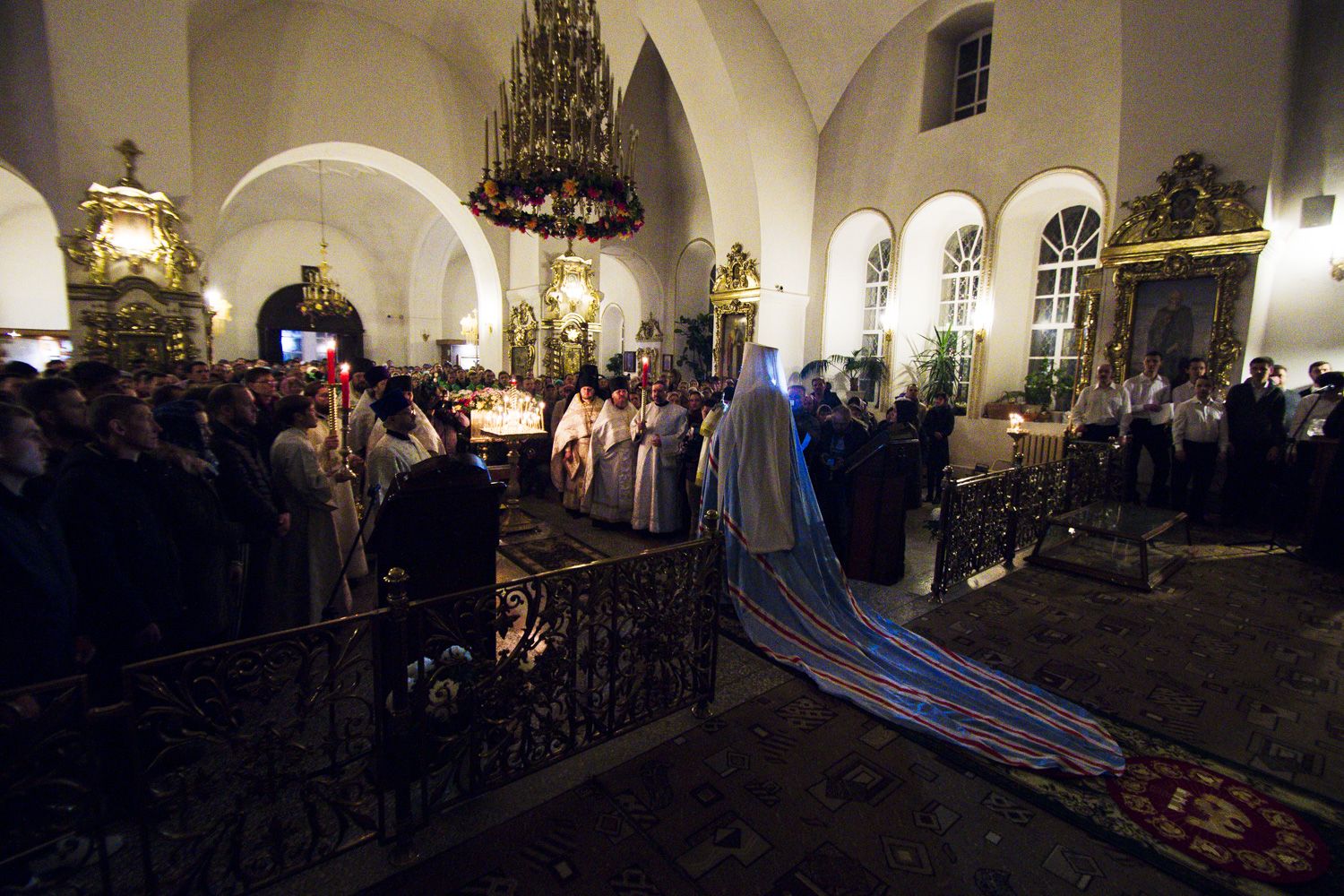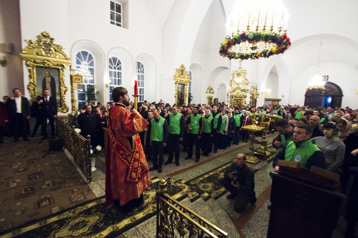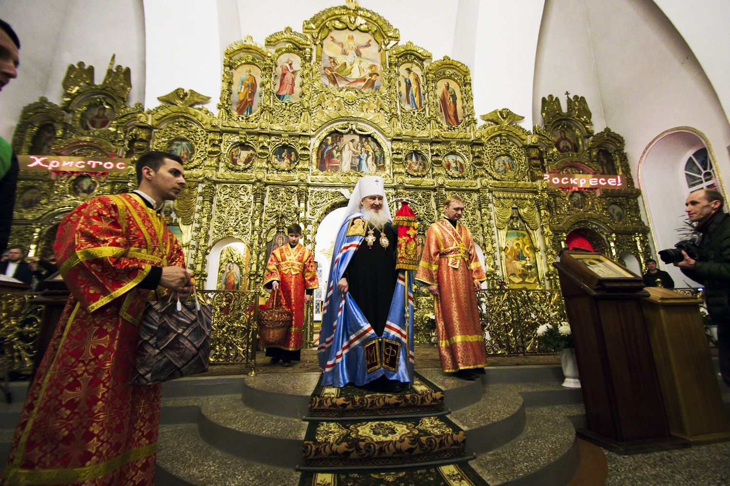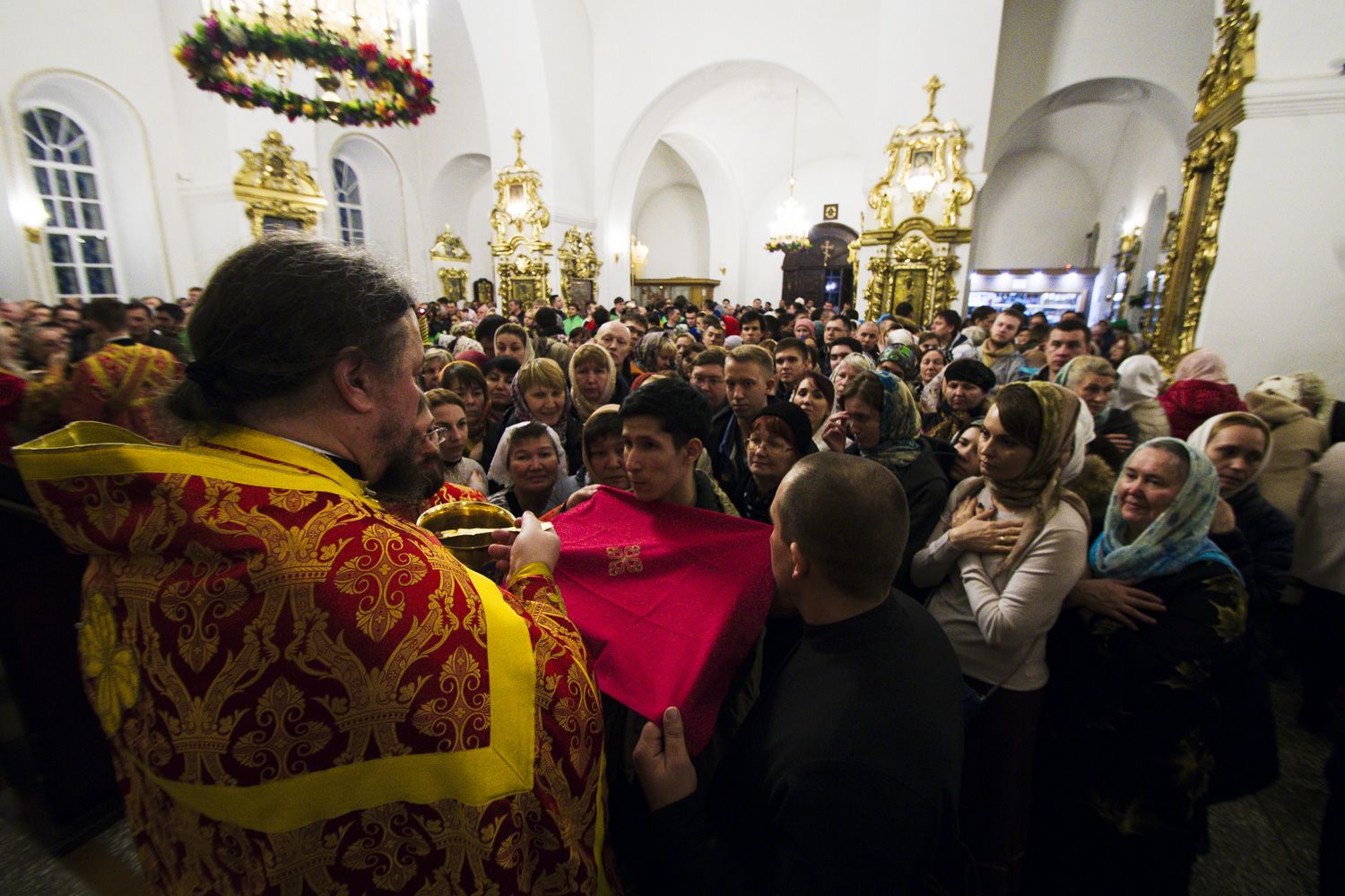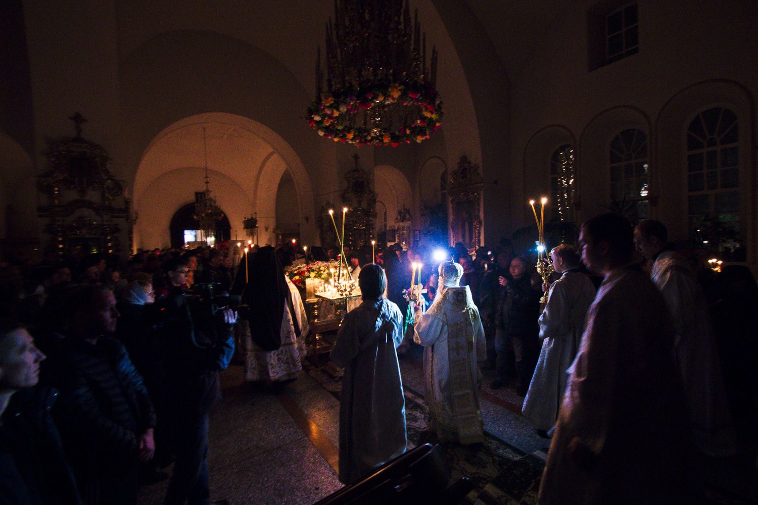 В заключение торжественного богослужения Его Высокопреосвященство поблагодарил верующих за совместную молитву и поздравил с праздником Светлого Христова Воскресения. «Несите благодать, полученную в эту святую ночь, в свои дома. Мы постепенно начинаем оживать и понимать, что должны блюсти свои традиции и свою веру», — сказал владыка Феофан.