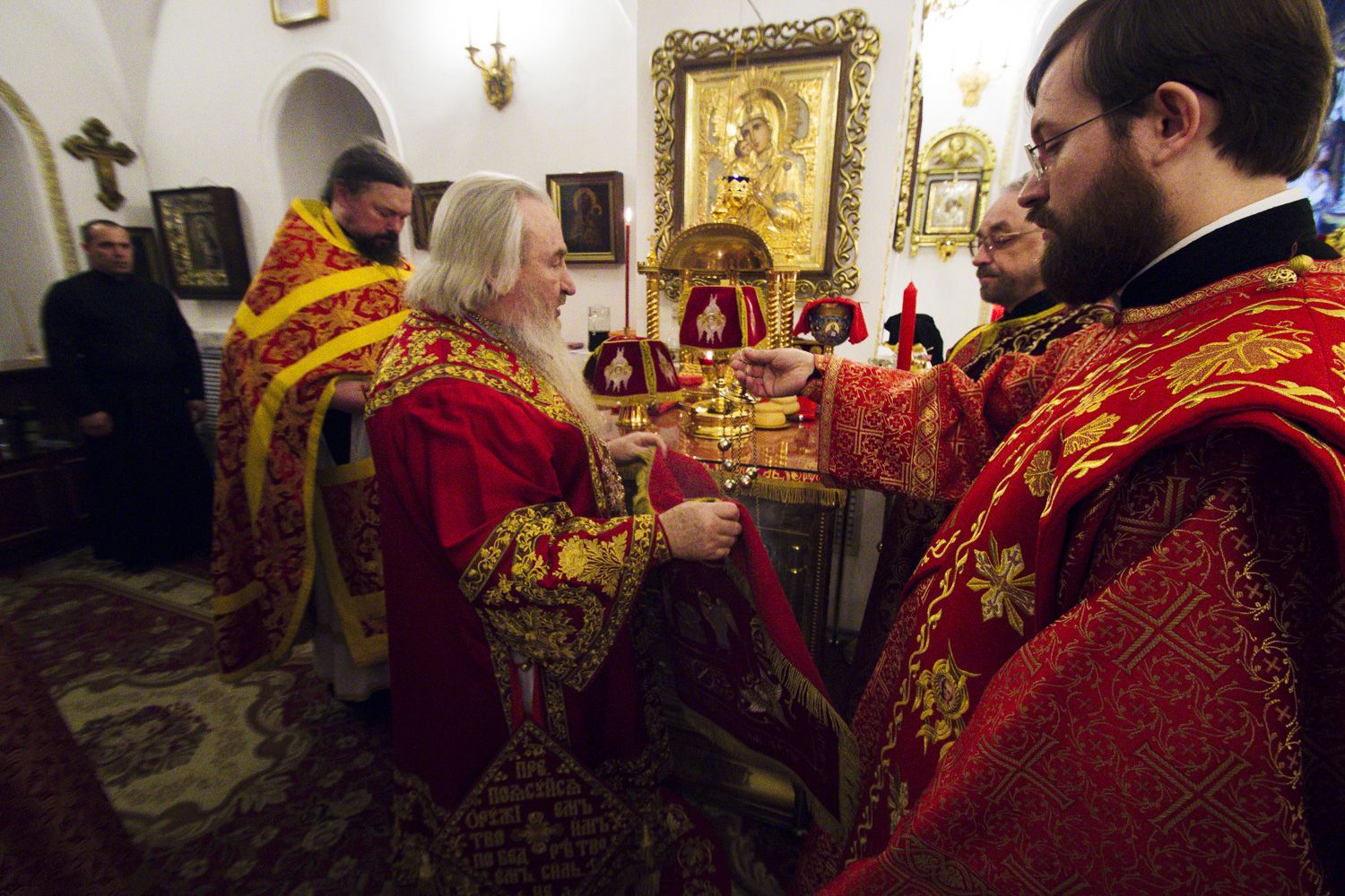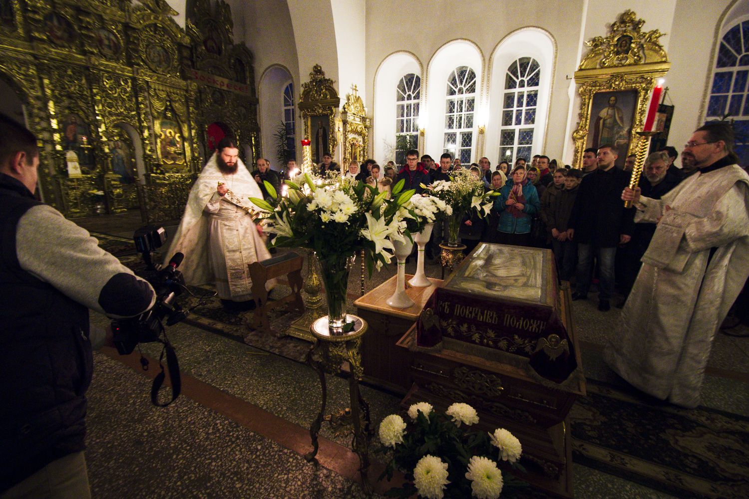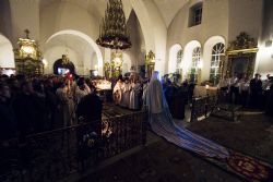 Перед началом утрени священнослужители совершили чин полунощницы перед Святой Плащаницей. Затем святыня была внесена в алтарь и положена на престол.