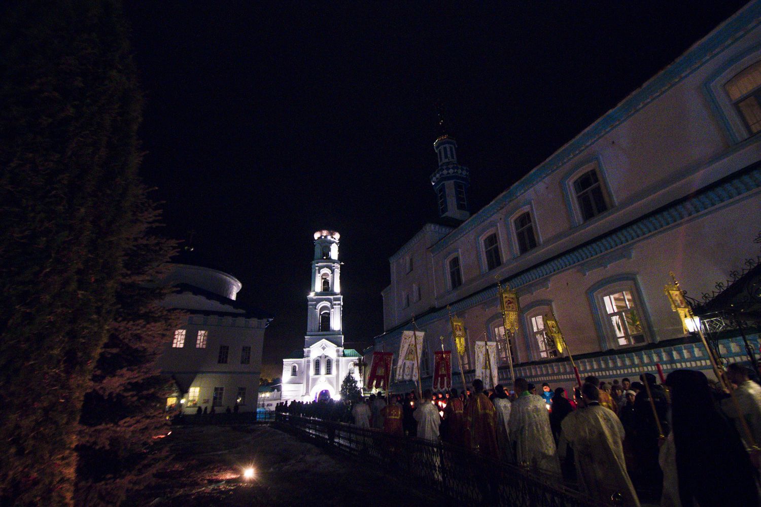 В полночь при пении стихиры «Воскресение Твое, Христе Спасе…» в Раифской обители состоялся крестный ход. После возгласа правящего архиерея «Христос воскресе!» и пения хором тропаря Пасхи над монастырем раздался праздничный салют.
