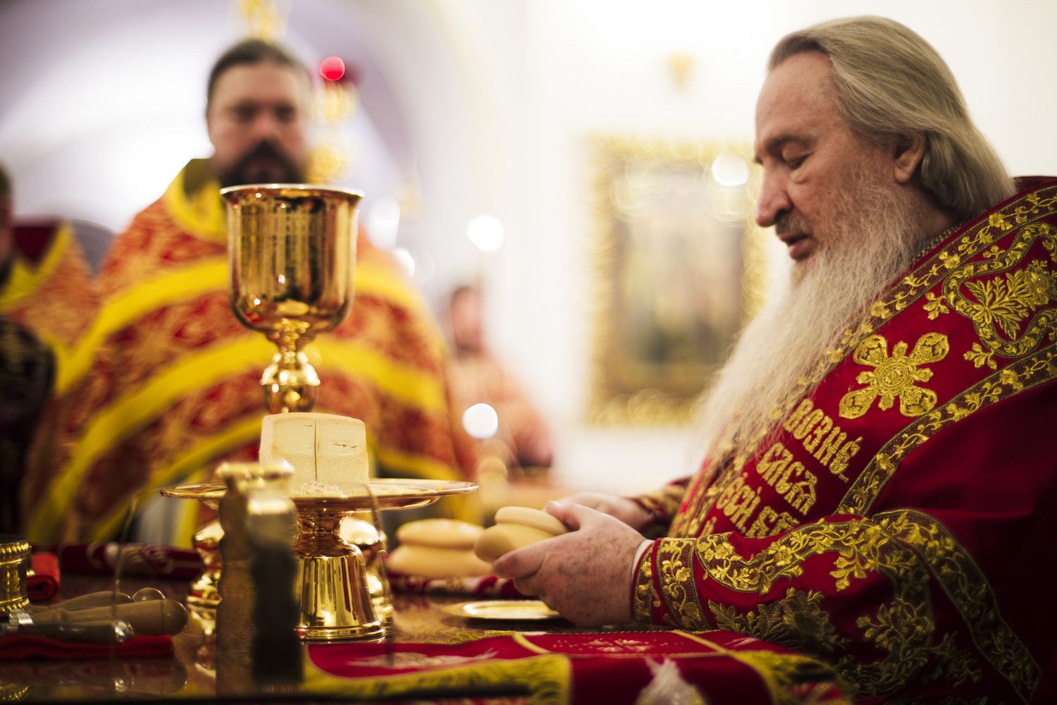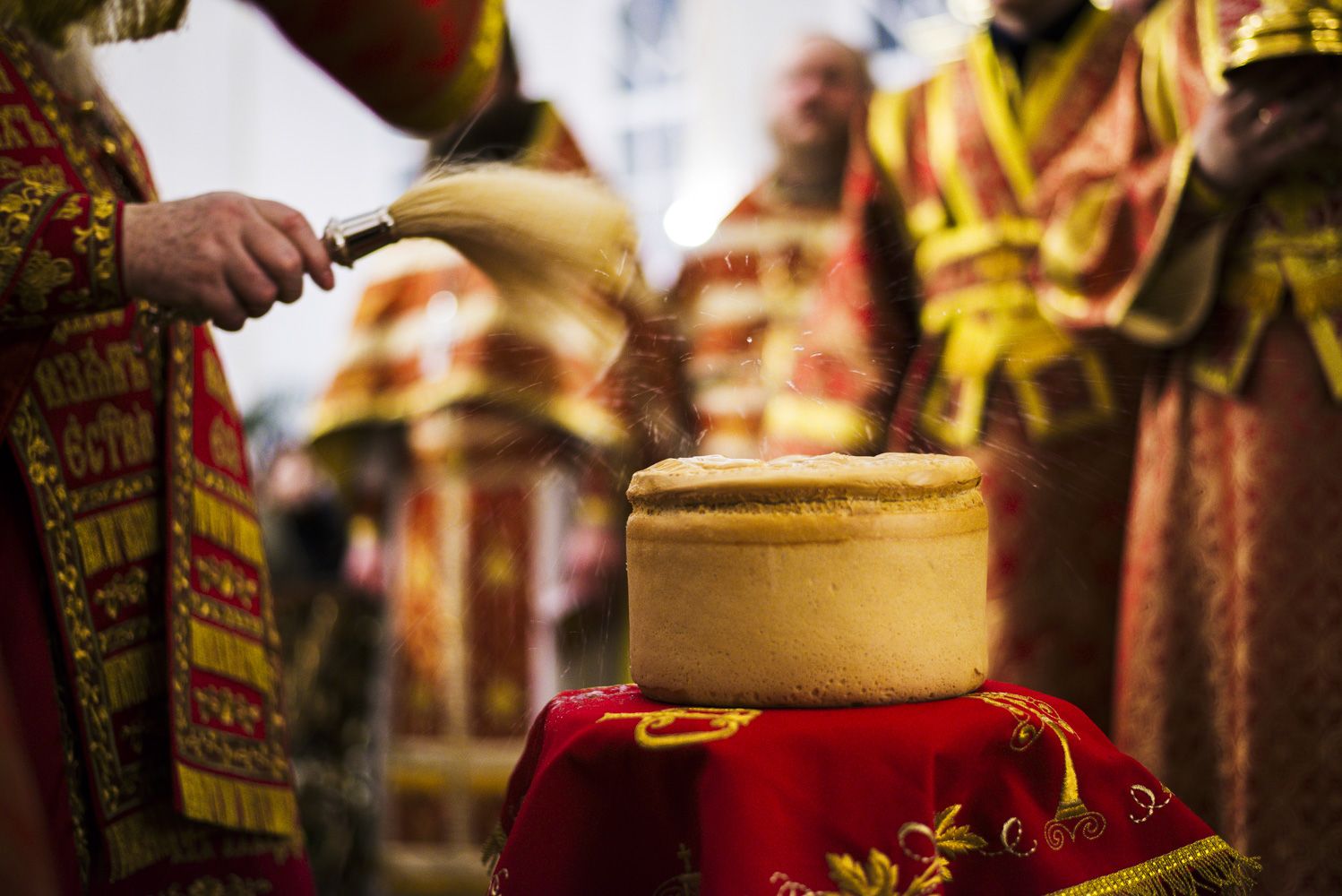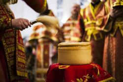 В конце Литургии глава Татарстанской митрополии прочитал молитву на освящение артоса.
