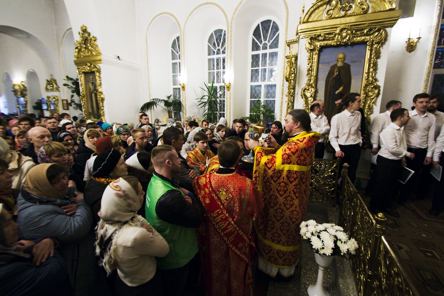 За праздничной Литургией в Раифском монастыре молились тысячи верующих. Помощь в проведении торжеств оказали члены молодежного общества «Казанские православные добровольцы».