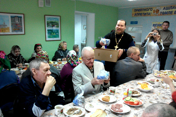 Перед началом концерта в молельной комнате постояльцы учреждения приняли участие в молебном пении. Во время концерта для них организовали праздничный стол. По завершении мероприятия пожилым людям вручили пасхальные подарки.
