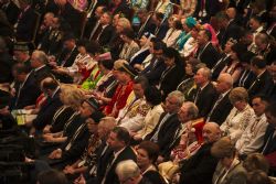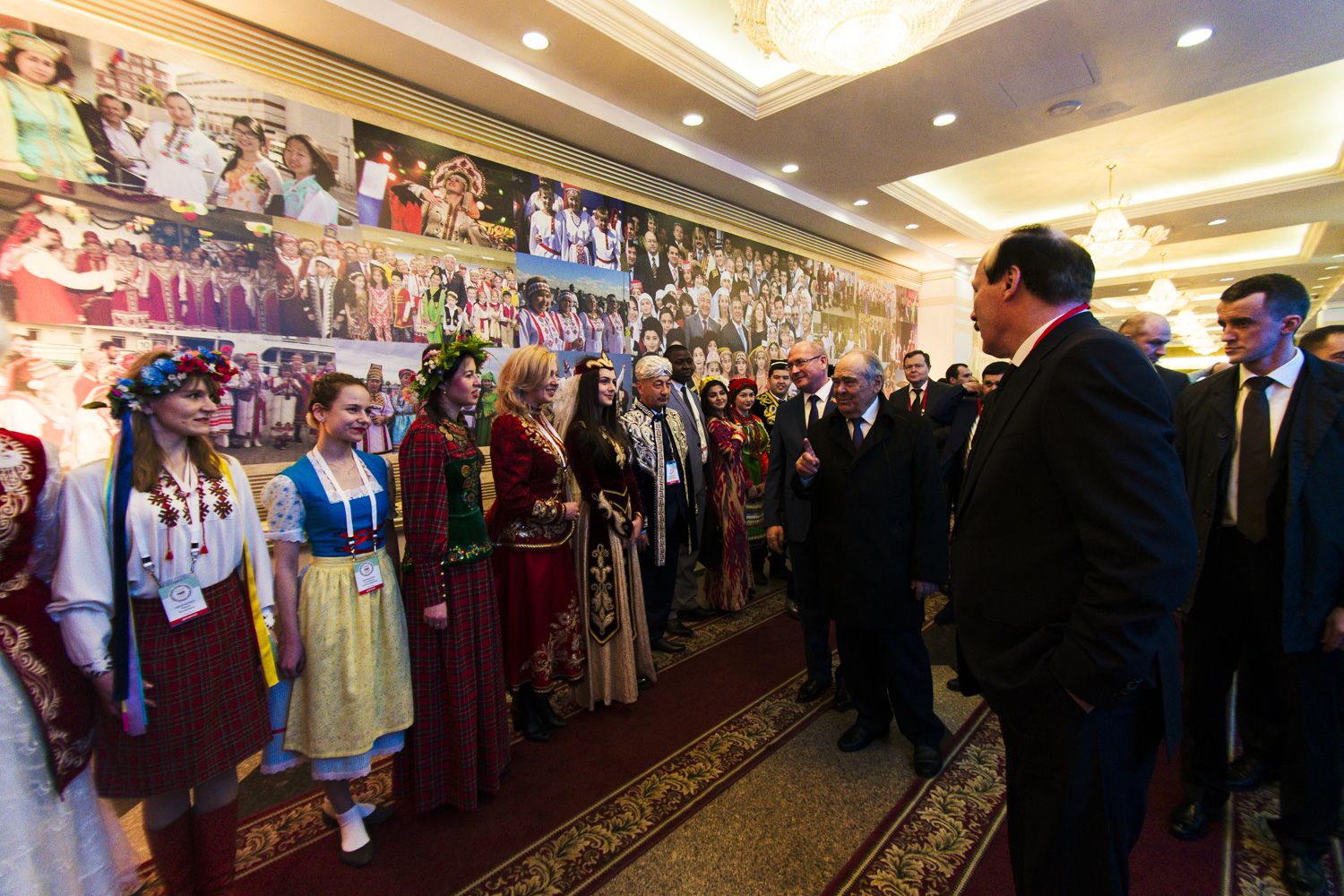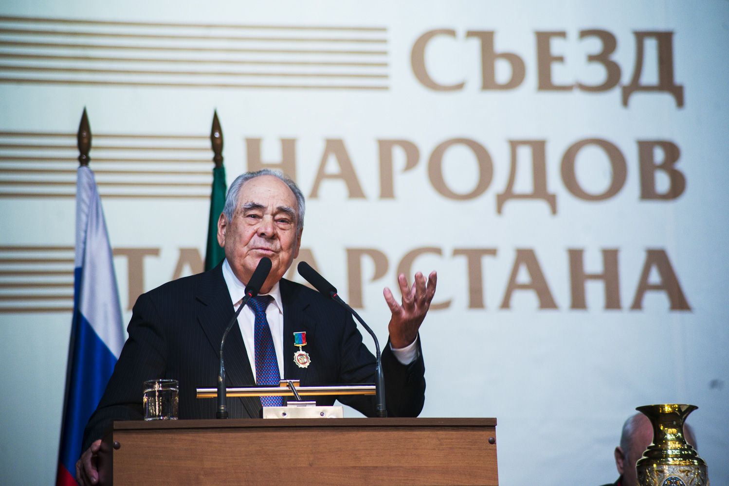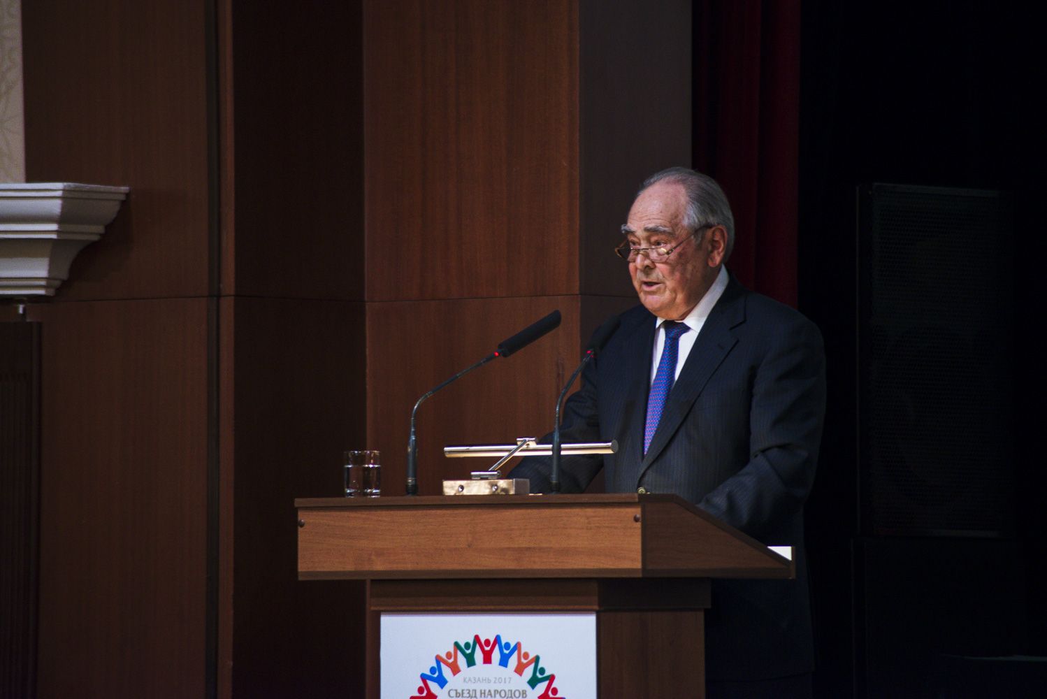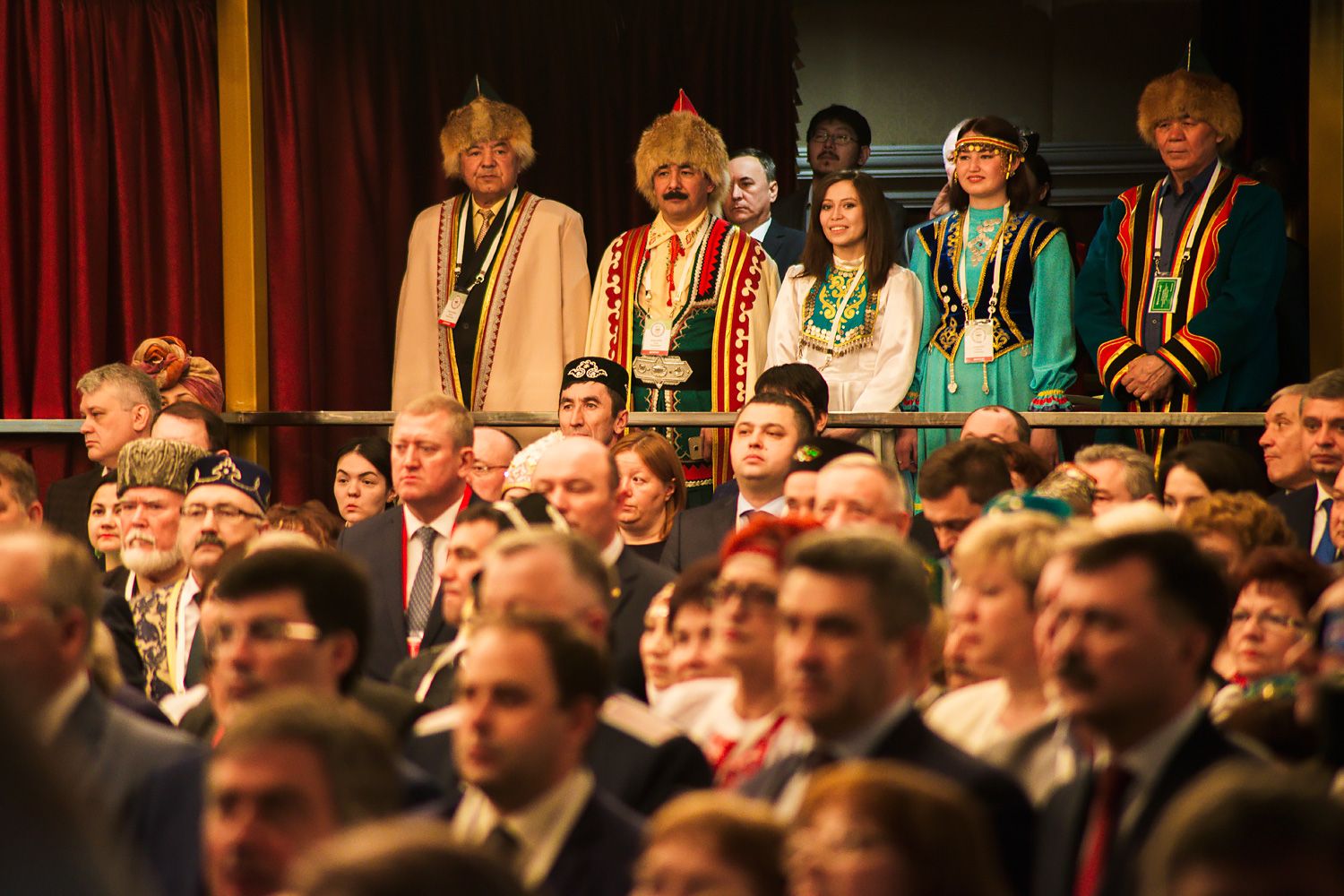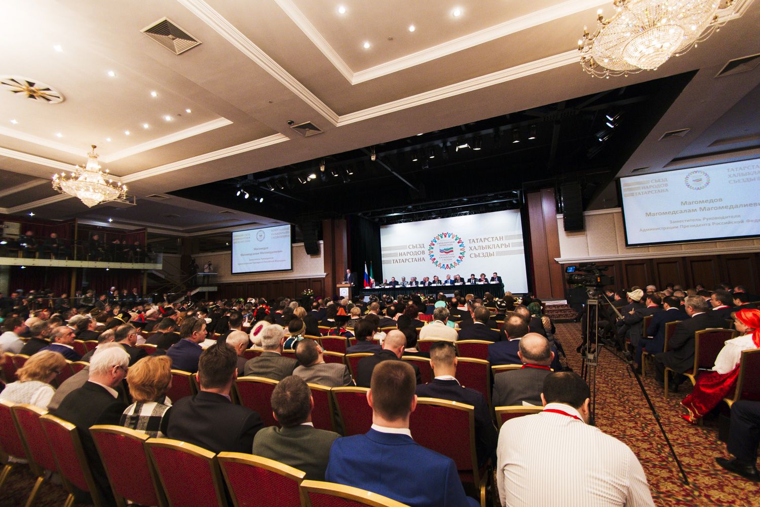 В президиуме съезда — Президент Республики Татарстан Р.Н. Минниханов, Государственный советник РТ М.Ш. Шаймиев, заместитель руководителя администрации Президента Российской Федерации М.М. Магомедов, заместитель Председателя Государственной Думы Федерального Собрания Российской Федерации В.А. Васильев, глава Республики Дагестан Р.Г. Абдулатипов, руководитель оргкомитета Съезда народов Татарстана, председатель Государственного Совета Ф.Х. Мухаметшин и другие официальные лица.
