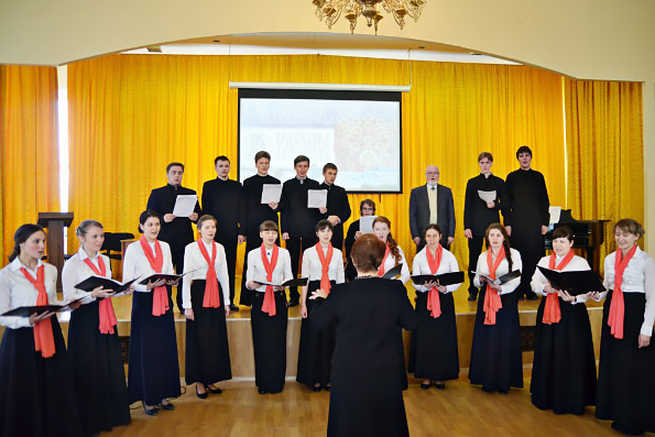 Официальная часть мероприятия завершилась выступлением хора воспитанниц регентско-катехизаторского отделения и сводного хора семинарии под руководством доцента церковно-певческих и музыкальных дисциплин Людмилы Есиной. Учащиеся исполнили церковные песнопения на кряшенском и церковно-славянском языках.