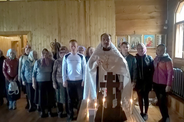 После отпуста игумен Пимен произнес краткое поучение на тему праздника и поблагодарил настоятеля и прихожан за добрую молитвенную память об усопшем иерее Сергии.