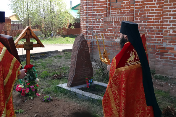 За богослужением была возглашена заупокойная ектения о приснопамятном священнослужителе, а по окончании богослужения состоялся крестный ход по пасхальному чину и лития у места погребения почившего.