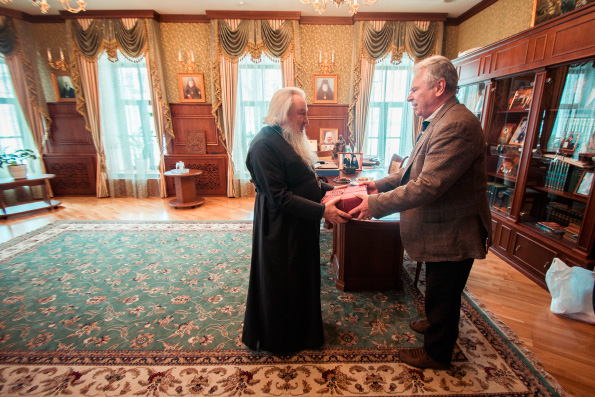 После взаимного приветствия Валерий Александрович сердечно поздравил главу Татарстанской митрополии с 70-летием со дня рождения и преподнес в подарок архипастырю экземпляр журнала «Вестник российской нации» со своими избранными научными трудами.
