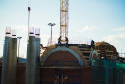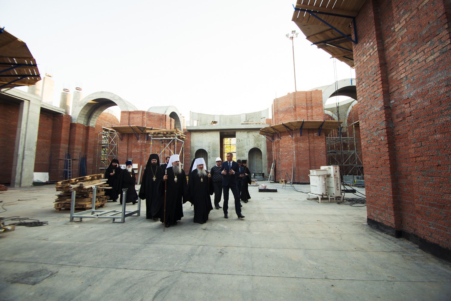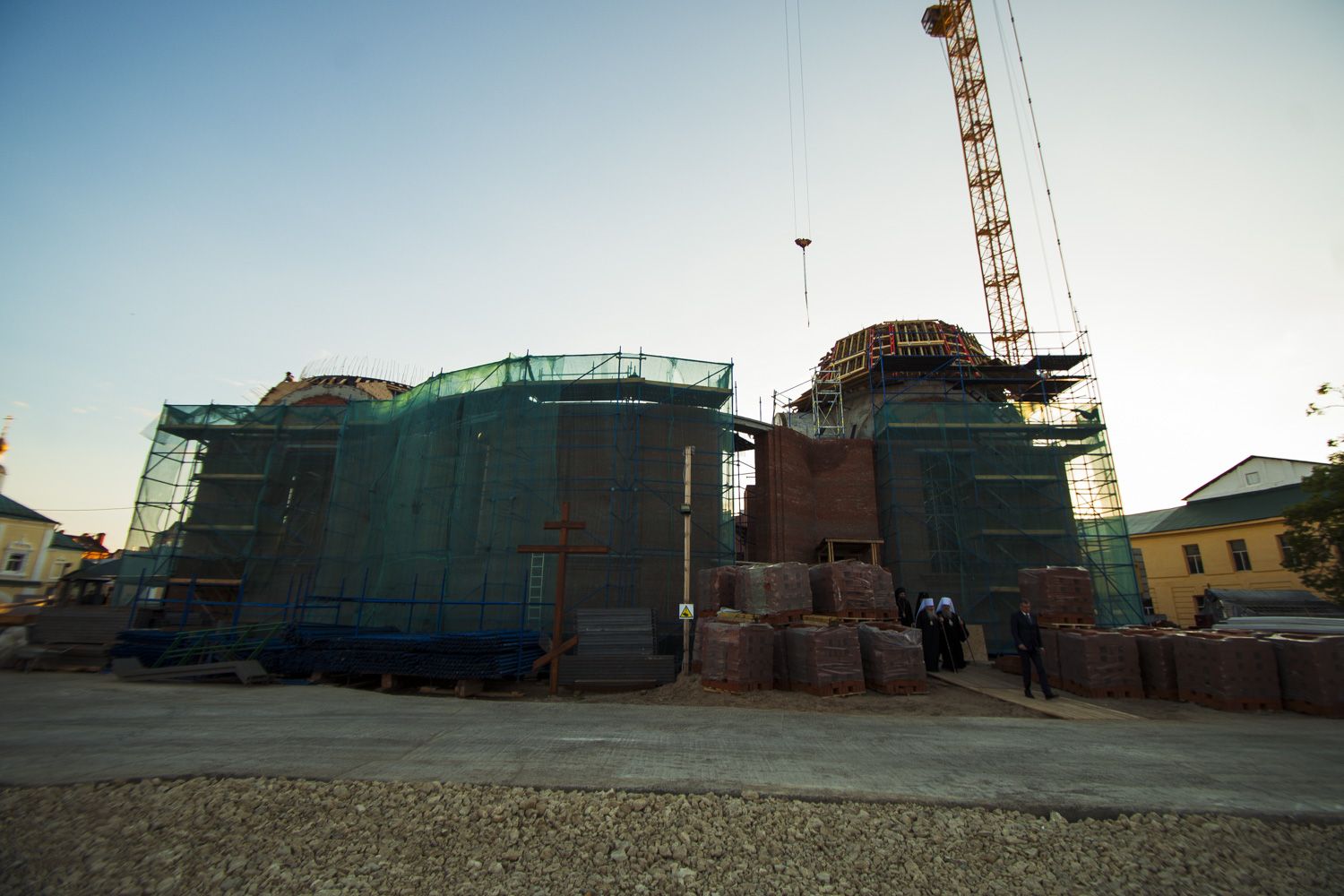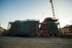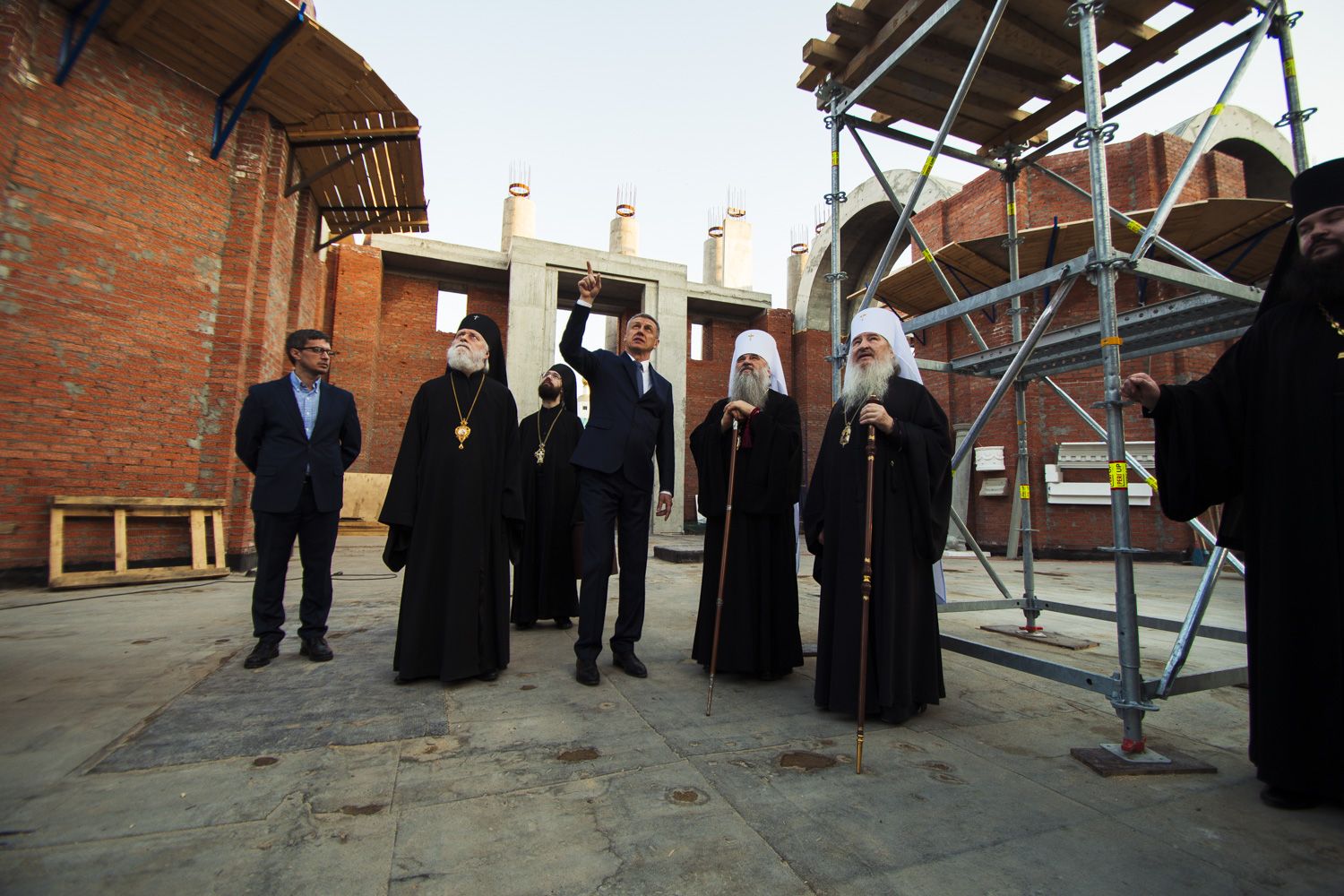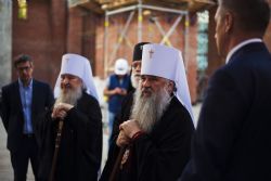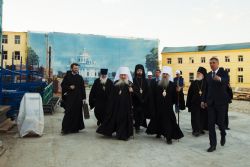 Тем же вечером в сопровождении главы Татарстанской митрополии прибывшие в Казань на торжества по случаю 70-летия митрополита Феофана архипастыри посетили место воссоздания собора Казанской иконы Божией Матери.