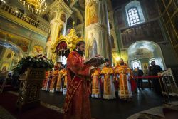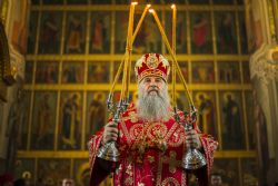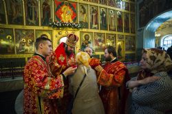 Я хотел бы поблагодарить вас, дорогие мои батюшки. Прошло вот уже два года, как мы вместе с вами. Хочу сказать: я нашел среди вас и помощников, и сподвижников, и понимание. Никогда ни на каком месте никакой архиерей без пастырей ничего не сможет добиться — конечно же, вместе с паствой, которую я сердечно благодарю, всех собравшихся здесь на молитву. Сегодня в городе дороги перекрыты, но мы молимся, ведь дорогу к Богу никто не может перекрыть, она без шлагбаумов. Очень важно, что мы вместе с вами сегодня.