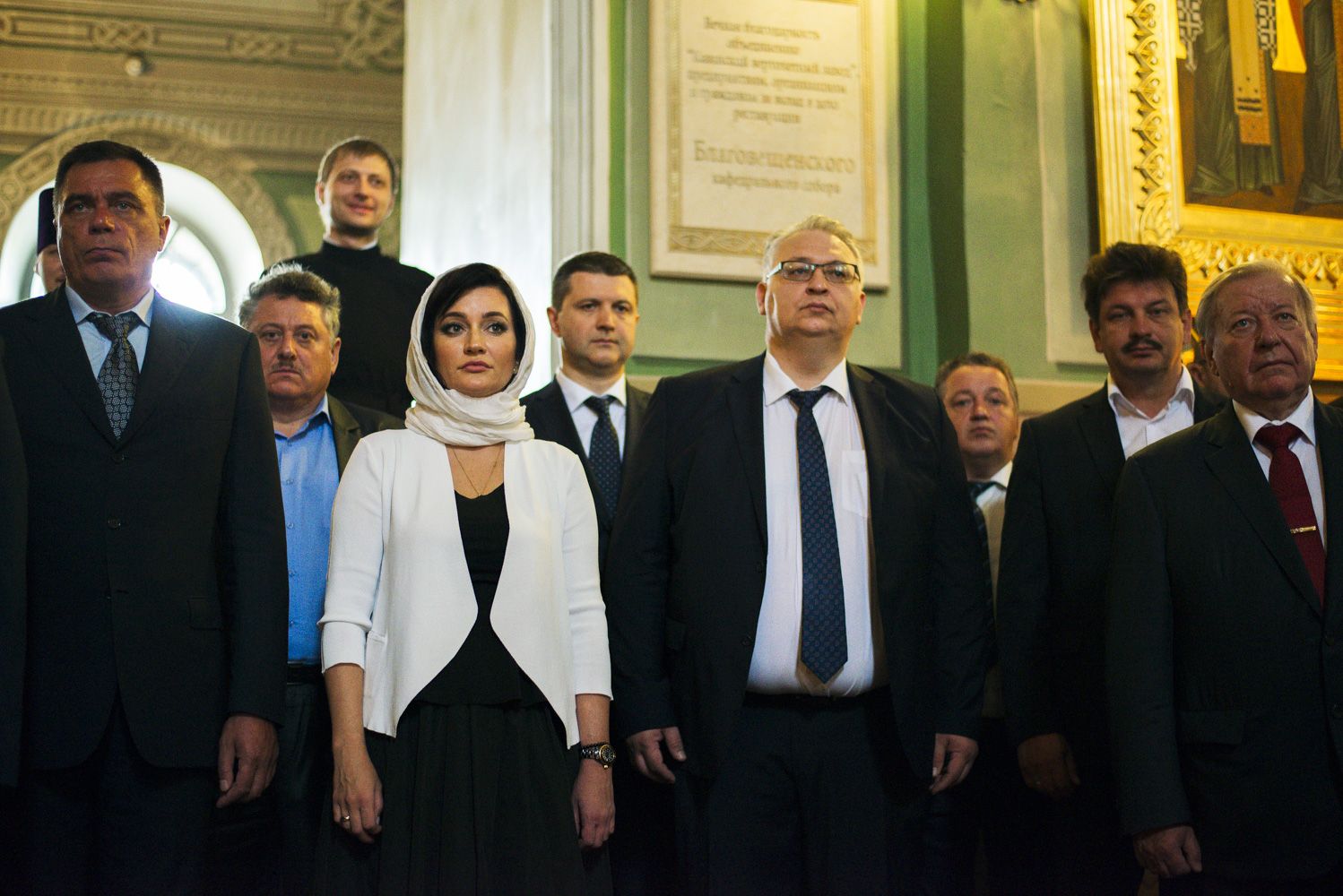 За Литургией молились полномочный представитель Президента Российской Федерации в Центральном федеральном округе А.Д. Беглов, заместитель министра финансов Российской Федерации А.Ю. Иванов, заместитель председателя Правительства Ставропольского края А.Ю. Мурга и другие официальные лица.