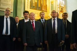 Я благодарю Вас, управляющего делами Московской Патриархии, постоянного члена Священного Синода, митрополита Санкт-Петербургского и Ладожского. Огромная ответственность лежит на Ваших плечах. Святейший Патриарх, конечно же, глава всех и над всеми, но есть конкретные люди, которые изо дня в день ведут кропотливую работу в жизни нашей Церкви. Огромное количество приходов, епархий, архиереев — и во всё и везде надо вникнуть, где-то помочь, где-то подсказать, а где-то и немножко подправить. Всё это лежит на Ваших плечах и мы знаем, с какой любовью и ответственностью Вы ко всем и ко всему относитесь.