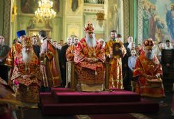 Праздничное богослужение возглавили: митрополит Санкт-Петербургский и Ладожский Варсонофий, управляющий делами Московской Патриархии; митрополит Казанский и Татарстанский Феофан; митрополит Саранский и Мордовский Зиновий; архиепископ Верейский Евгений, председатель Учебного комитета Русской Православной Церкви; архиепископ Пятигорский и Черкесский Феофилакт; архиепископ Калининградский и Балтийский Серафим; архиепископ Якутский и Ленский Роман; епископ Альметьевский и Бугульминский Мефодий; епископ Магнитогорский и Верхнеуральский Иннокентий; епископ Балахнинский Илия, викарий Нижегородской епархии; епископ Чистопольский и Нижнекамский Пармен.