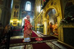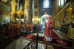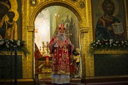 На сугубой ектении были возглашены молитвенные прошения о ныне чествуемом главе Татарстанской митрополии.