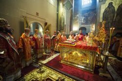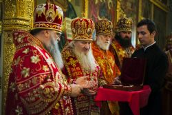 По завершении Литургии митрополит Варсонофий огласил поздравительный адрес Святейшего Патриарха Московского и всея Руси Кирилла митрополиту Феофану в связи с 70-летием со дня рождения и вручил Его Высокопреосвященству орден святителя Иннокентия, митрополита Московского и Коломенского, I степени.