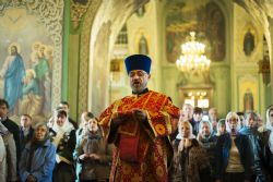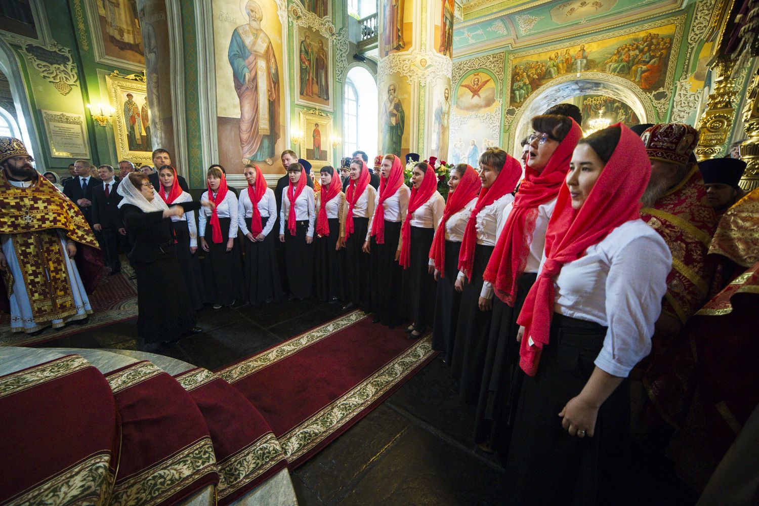 Песнопения за богослужением исполнил архиерейский хор Казанской епархии под управлением Дениса Рогова.