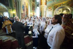 На площади перед собором владыку митрополита также поздравила православная молодежь.