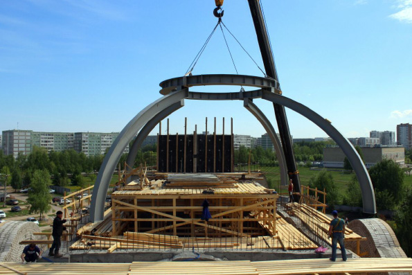 На приходе Рождества Христова города Набережные Челны продолжаются строительные работы храма в честь Казанской иконы Божией Матери.