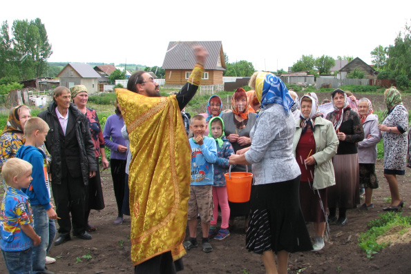 Молебное пение возглавил благочинный Пестречинского округа протоиерей Павел Кириллов. Богослужение, которое по традиции поселения совершается в четверг девятой недели после праздника Пасхи Христовой, состоялся в строящейся часовне в честь великомученицы Параскевы.