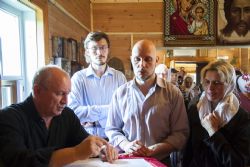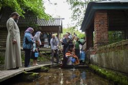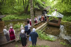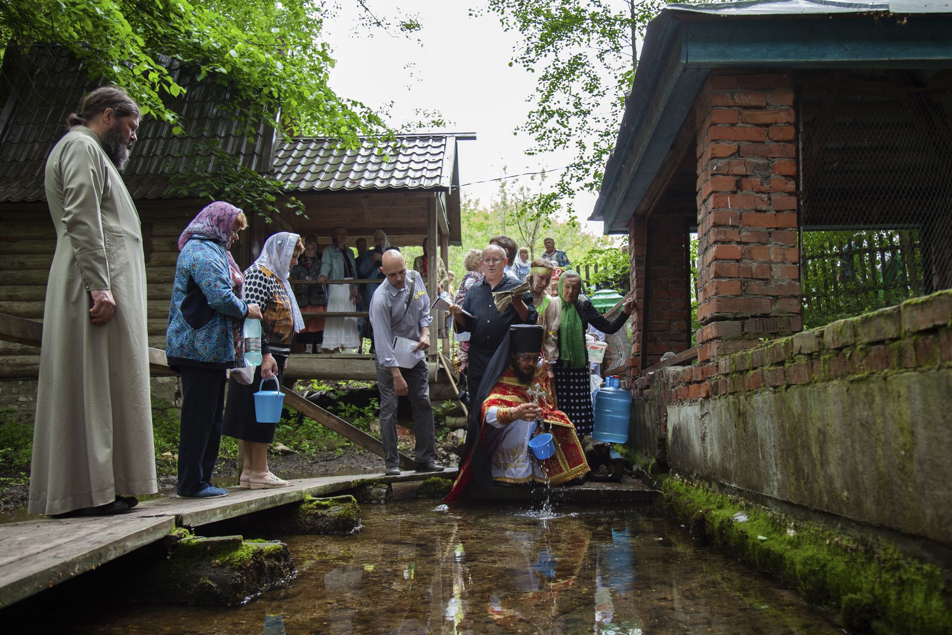 После чина водоосвящениясвященнослужители окропили верующих святой водой, после чего все приложились к чудотворной иконе и набрали освященной ключевой воды. Самые смелые погрузились в купель, оборудованную здесь много лет назад благотворителями.