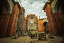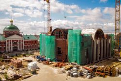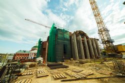 Возводить стены собора начали в августе прошлого года. К настоящему времени установлены все двадцать четыре колонны и шесть полуколонн, выполняются работы по устройству сводов. Кроме того, рядом со строительной площадкой продолжают работать археологи, которые обнаруживают новые артефакты.