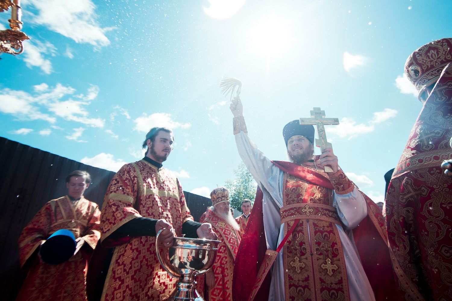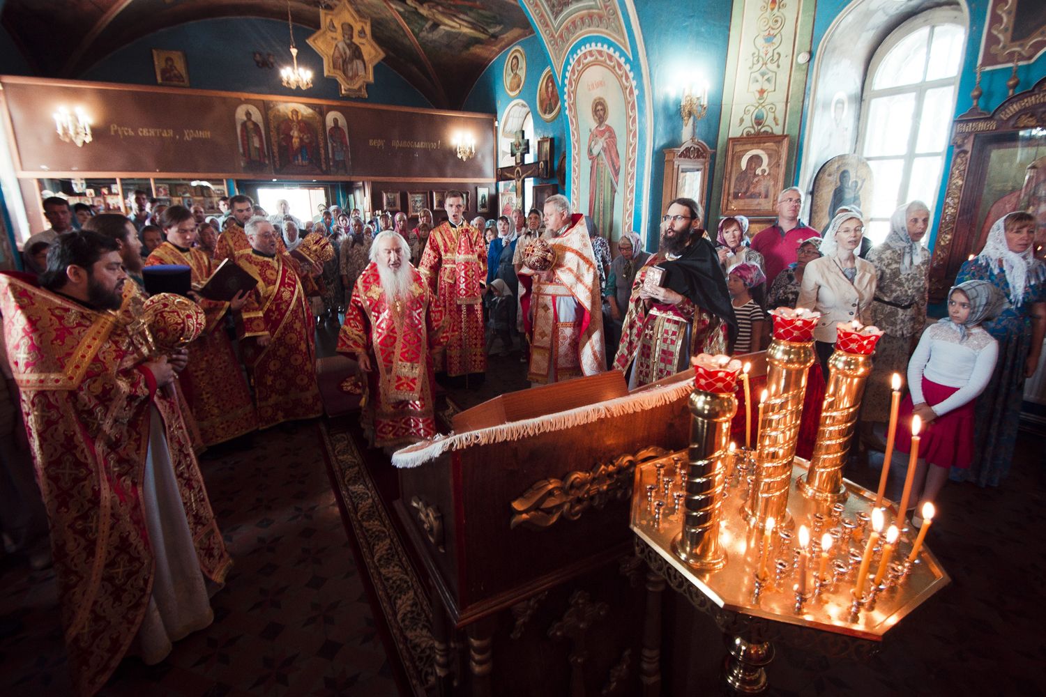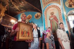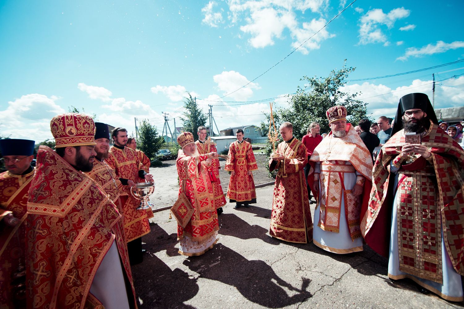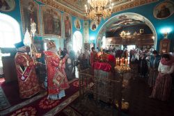 По окончании Литургии были совершены молебное пение святым покровителям храма и крестный ход вокруг храма.