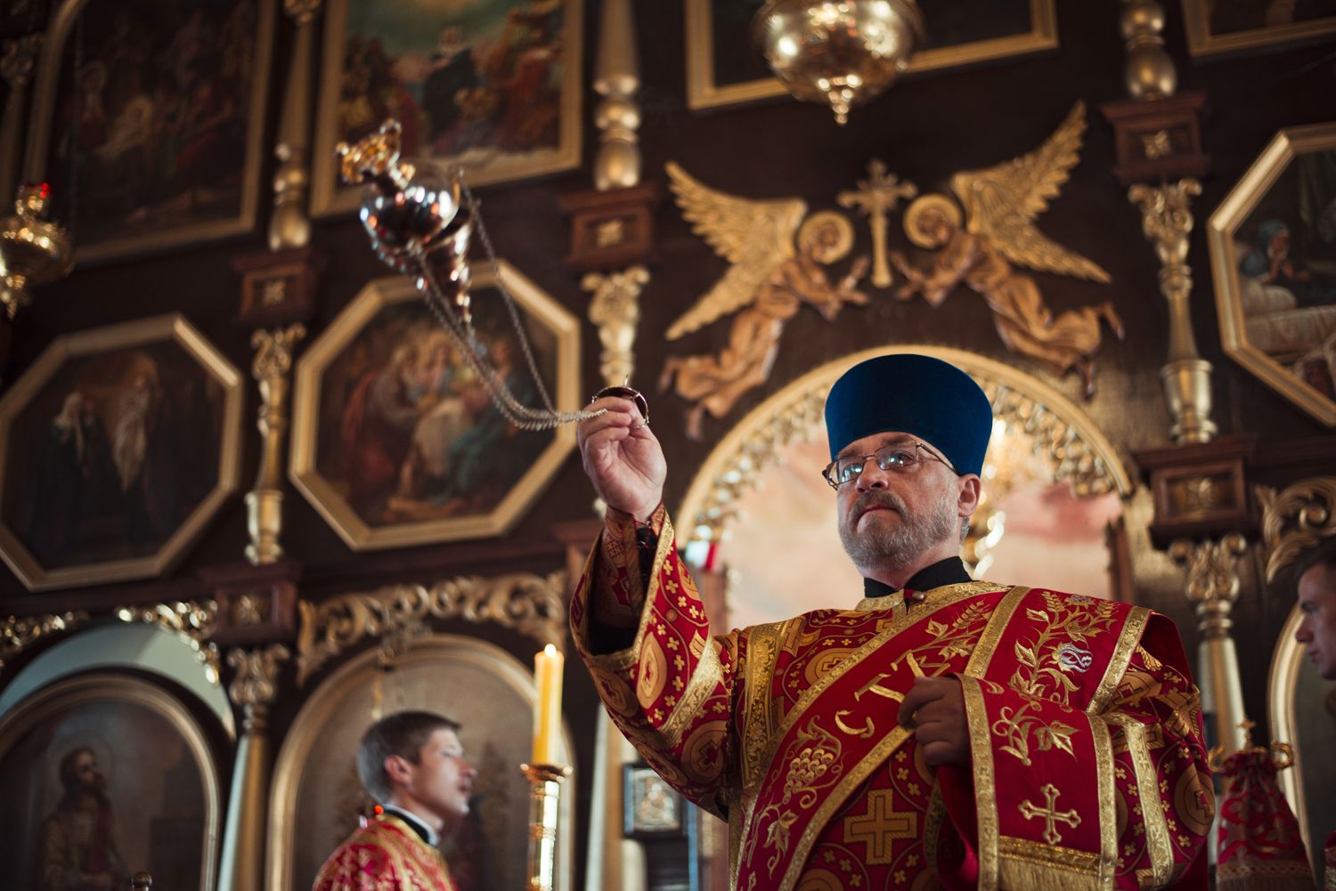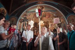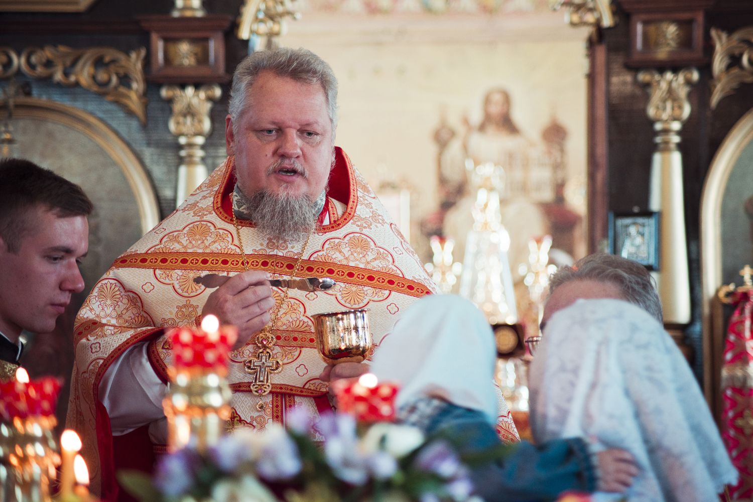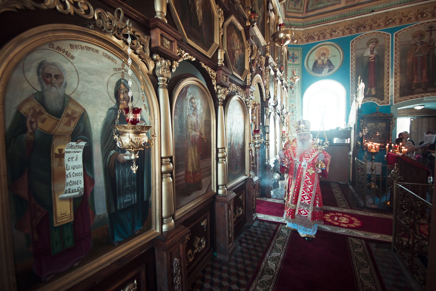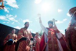 По окончании Литургии были совершены молебное пение святым покровителям храма и крестный ход вокруг храма.