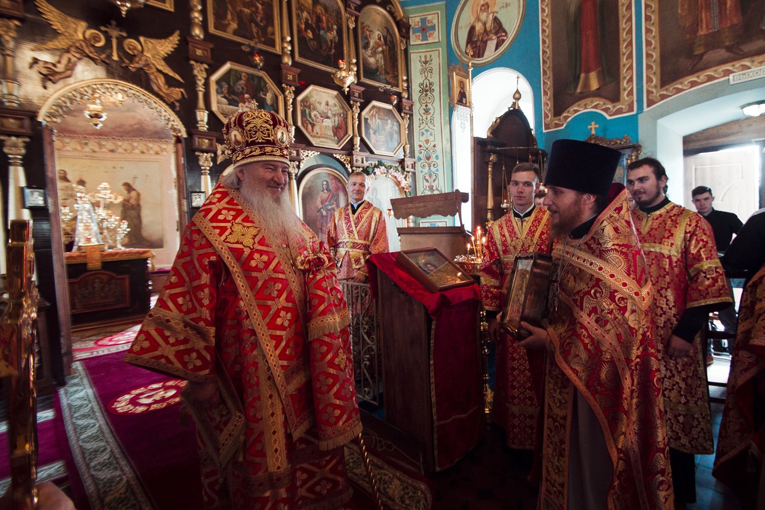 В ответном слове отец Иаков выразил признательность архипастырю за посещение прихода и оказываемое доверие в деле его благоустройства. На молитвенную память священник преподнес Его Высокопреосвященству Почаевскую икону Божией Матери.