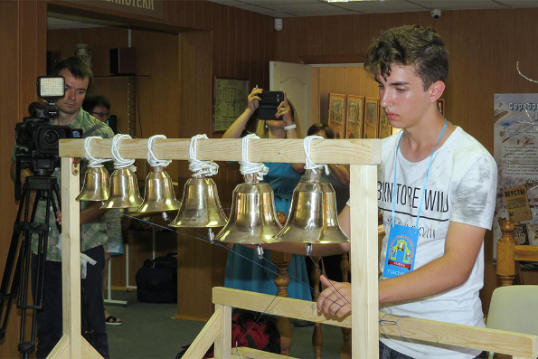 Московский звонарь Зачатьевского монастыря Виктор Котельников рассказал присутствующим об известном столичном ансамбле «Колокола России». Он отметил, что коллектив выступает не только в России, но и за рубежом — с известными хорами и оркестрами, в больших концертных залах и в провинциальных домах культуры, на крестных ходах и фестивалях колокольного звона. В его репертуаре — канонические православные звоны и классическая музыка.