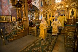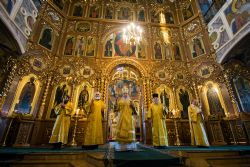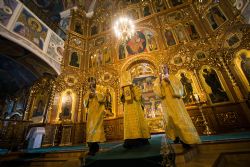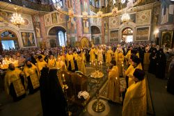 На полиелее архипастыри и сослужившее духовенство пропели величание священномученику Вениамину, митрополиту Петроградскому.