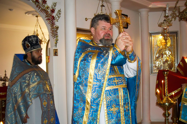 Затем священники отслужили водосвятный молебен, а по окончании богослужения поздравили друг друга и прихожан с престольным праздником.