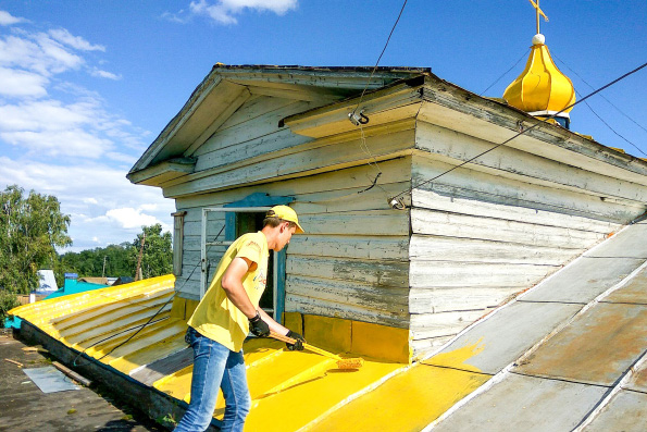 В молитвенном доме, расположенном рядом с церковью, добровольцы вымыли полы, стены и окна. Кроме того, покрасили маковку с крестом и часть кровли здания.