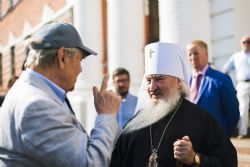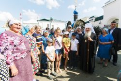Высоких гостей приветствовал священноархимандрит обители митрополит Казанский и Татарстанский Феофан.