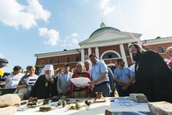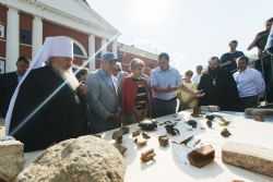 Директор института археологии им. А.Х. Халикова Академии наук РТ Айрат Ситдиков продемонстрировал участникам встречи археологические находки, сделанные на территории монастыря за время раскопок. В их числе: часть креста-энколпиона, нагрудная иконка-складень, фрагменты церковной утвари, образцы керамики и фрагменты церковной утвари, монеты разных веков и государств, осколок каменного пушечного ядра.