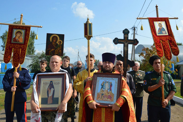 По окончании службы состоялся крестный ход к стенам разрушенного в советское время Ильинского монастыря. В молитвенном шествии приняли участие казаки Мензелинского и Боровецкого хуторов. Священнослужители и миряне прошли по улицам древнего города, исполняя молитвенные песнопения.