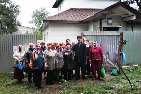 Совместными усилиями прихожан прихрамовая территория была очищена от мусора. Кроме того, прихожане скосили траву по всему периметру храма и спилили разросшиеся кусты. Теперь путь к церкви пролегает по аккуратным тропинкам.