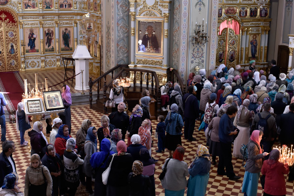 После этого паломники посетили главный храм Свияжска — собор Успения Пресвятой Богородицы, который был недавно включен в Список Всемирного культурного наследия ЮНЕСКО. В настоящее время в нем ведутся реставрационные работы. Этот храм, относящийся к псковско-новгородскому стилю, возвели в 1556—1560 гг. под руководством под руководством зодчих Постника Яковлева и Ивана Ширяя, являющихся авторами московского собора Василия Блаженного. Внутренняя роспись стен — уникальный памятник древнерусского искусства второй половины 16-го века.