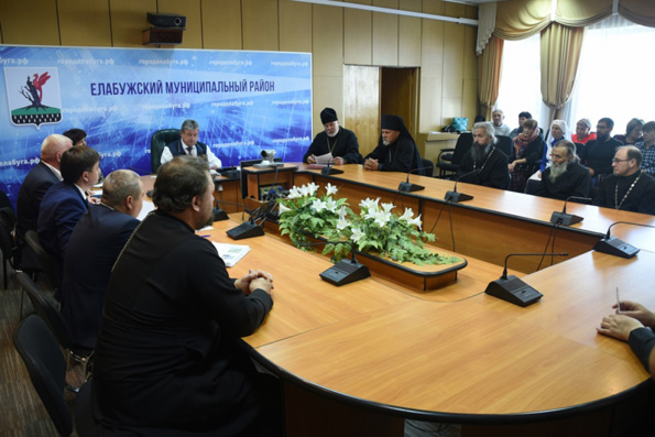 19 сентября в Елабуге состоялась встреча главы Елабужского района Геннадия Емельянова с духовенством Елабужского благочиния Русской Православной Церкви. На ней обсуждались вопросы, касающиеся восстановления и реставрации городских и сельских храмов.